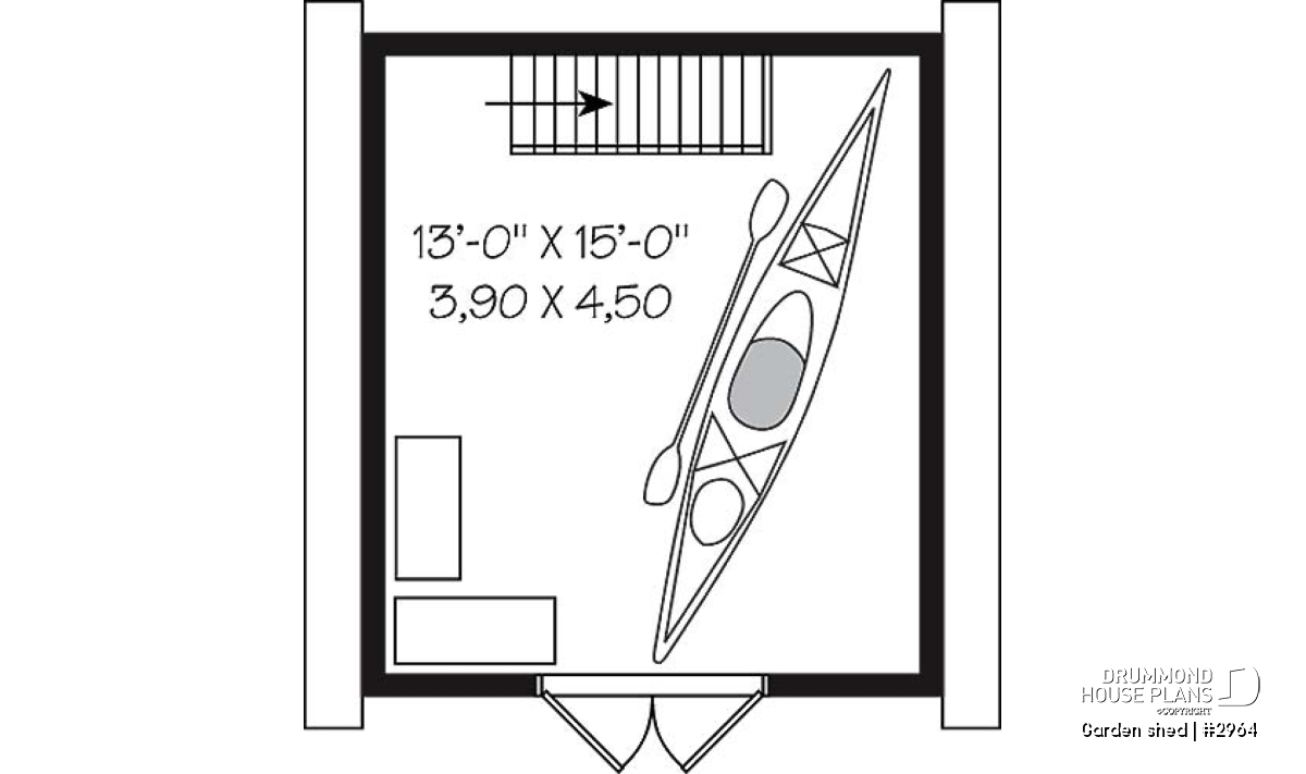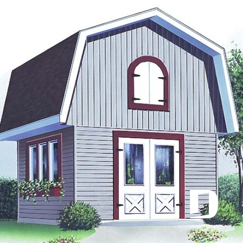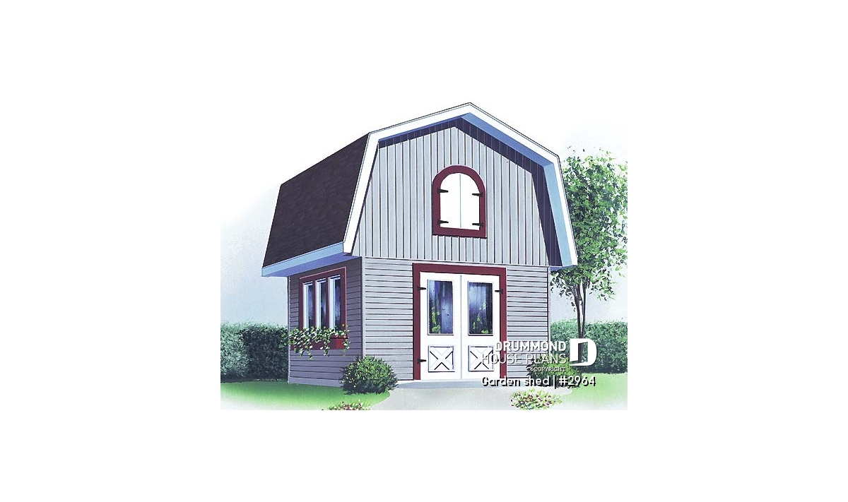 Barn style shed plan, with upstairs storage accessible by stairs