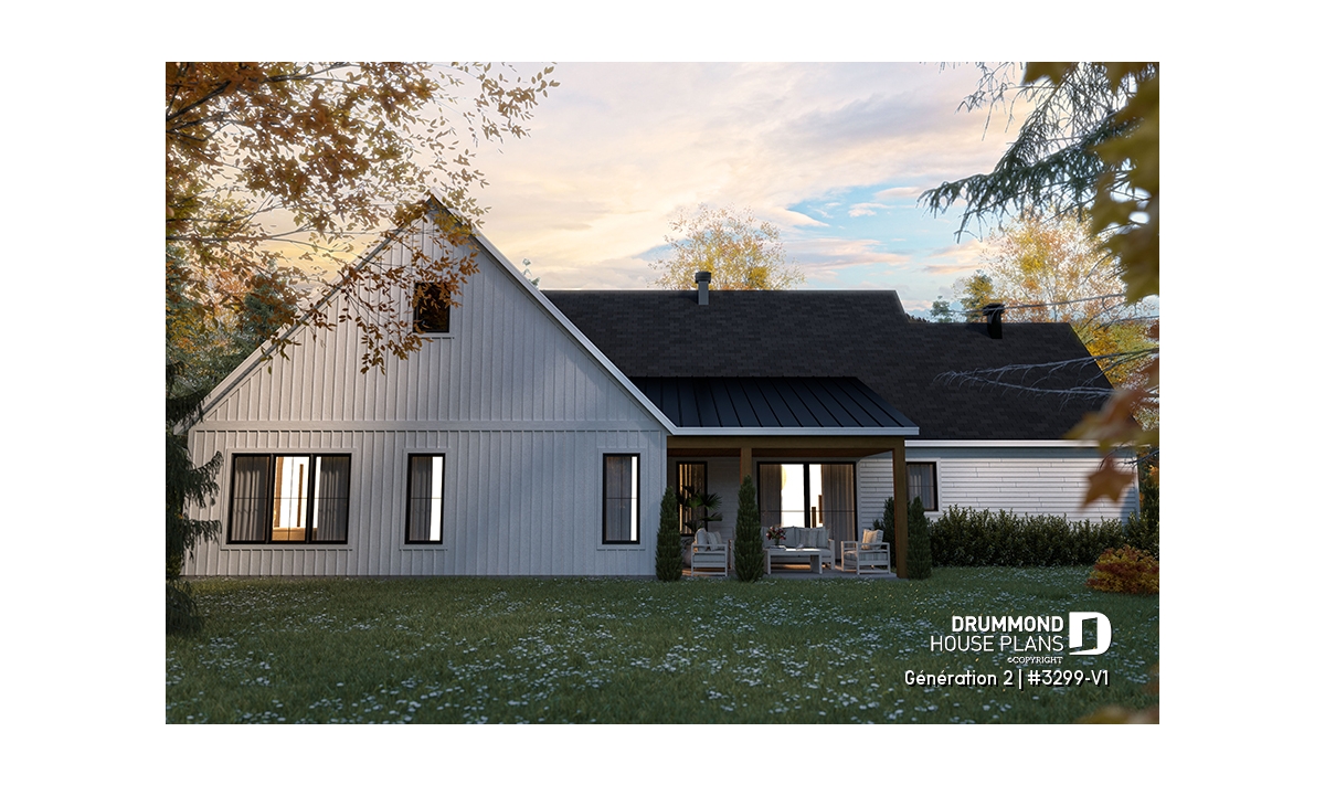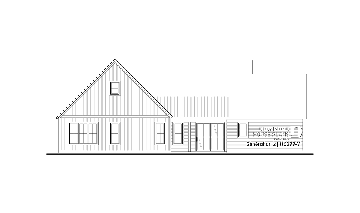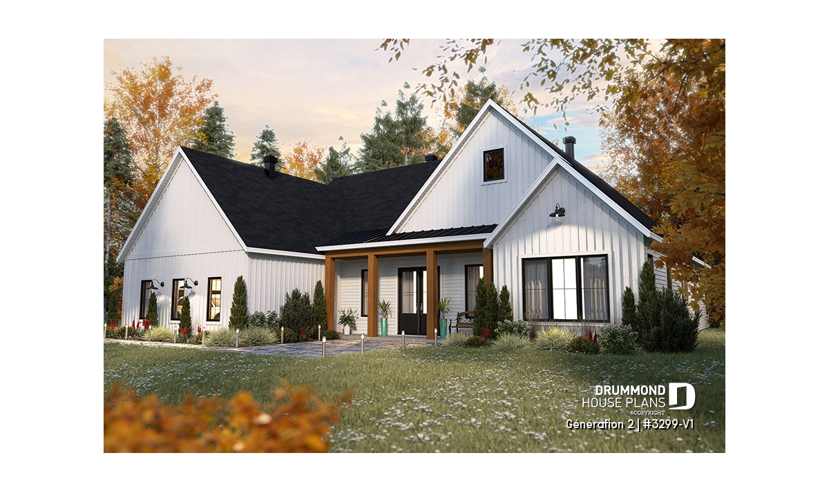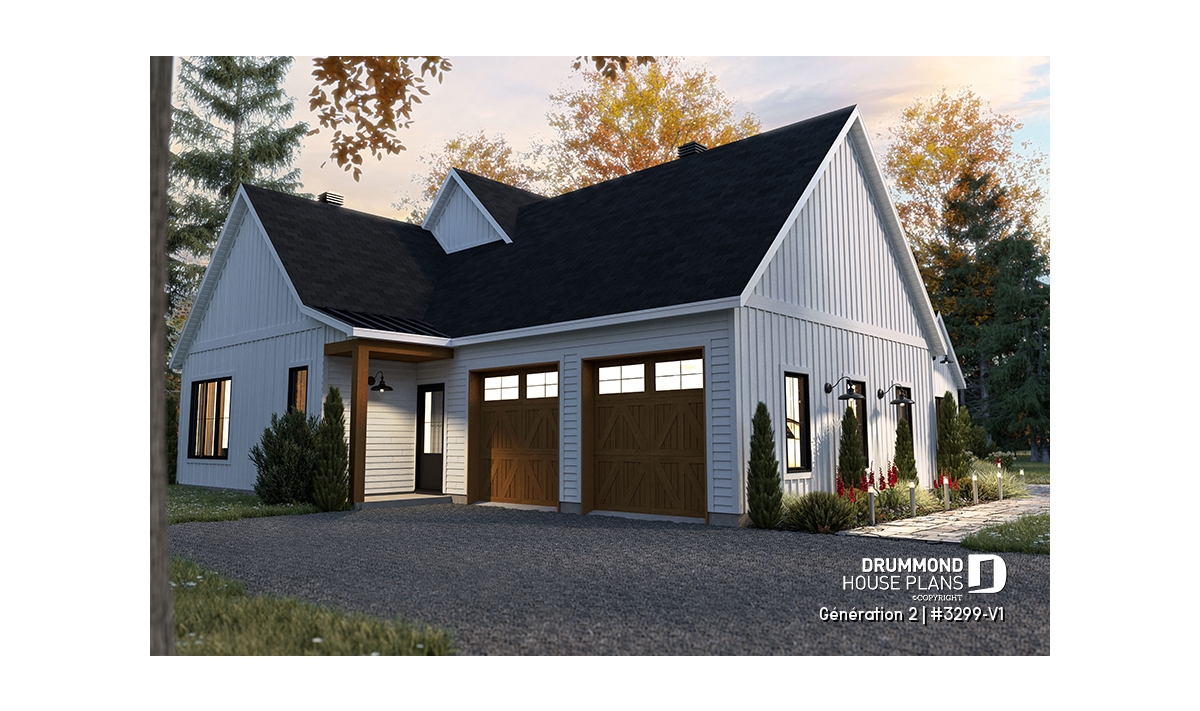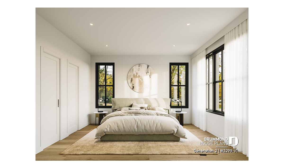 front - BASE MODEL - Generational house plan with 3 bedrooms and 2 baths in main apartment - Génération 2