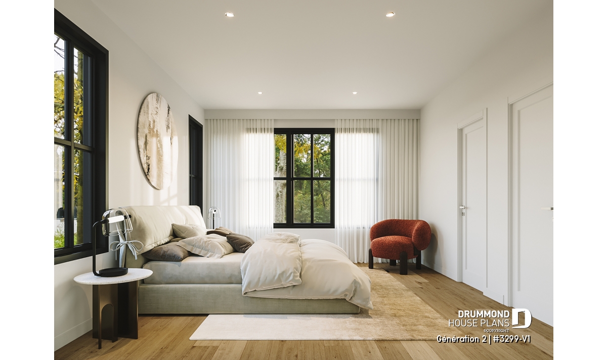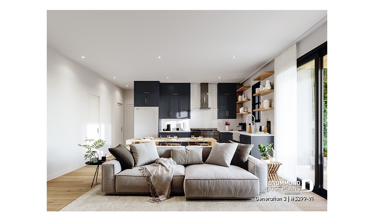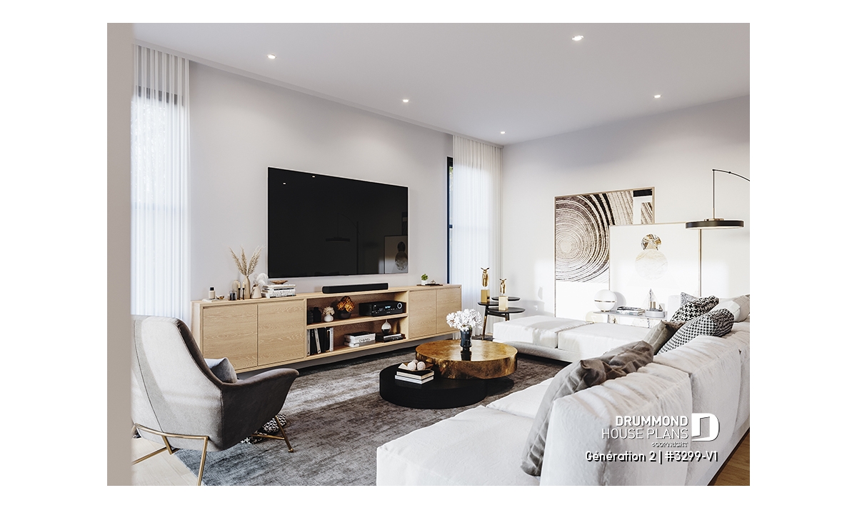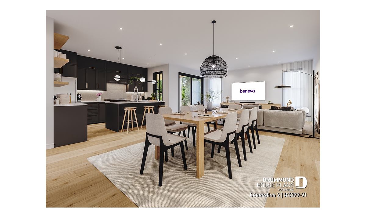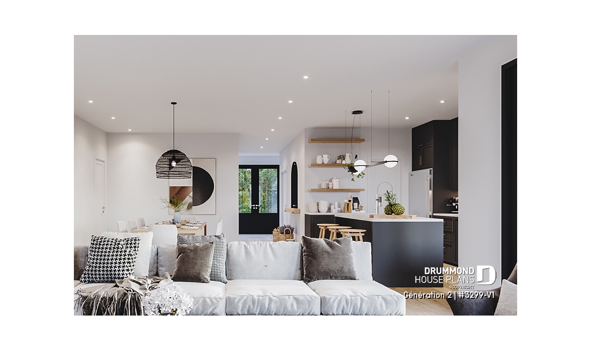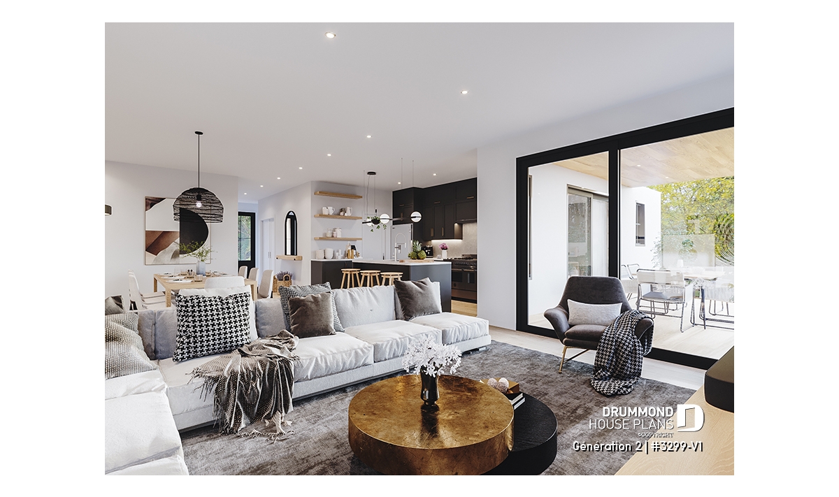 front - BASE MODEL - Generational house plan with 3 bedrooms and 2 baths in main apartment - Génération 2