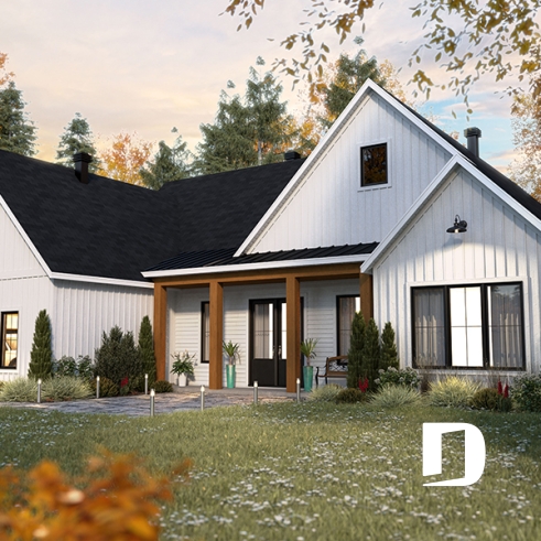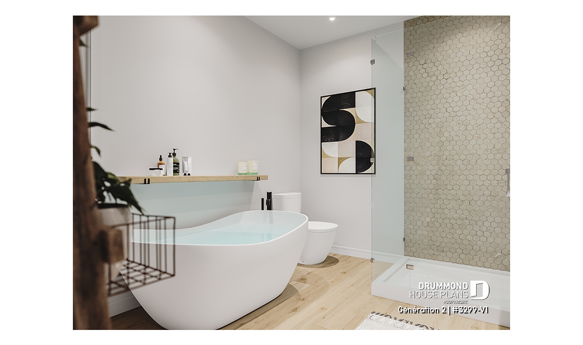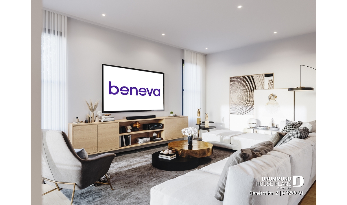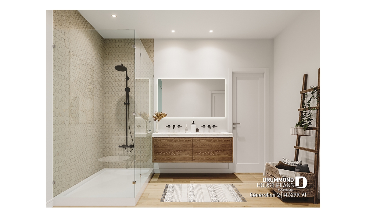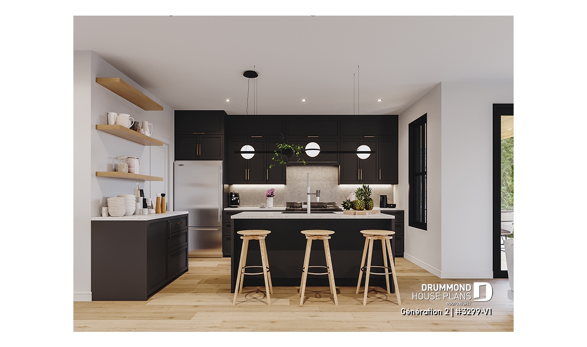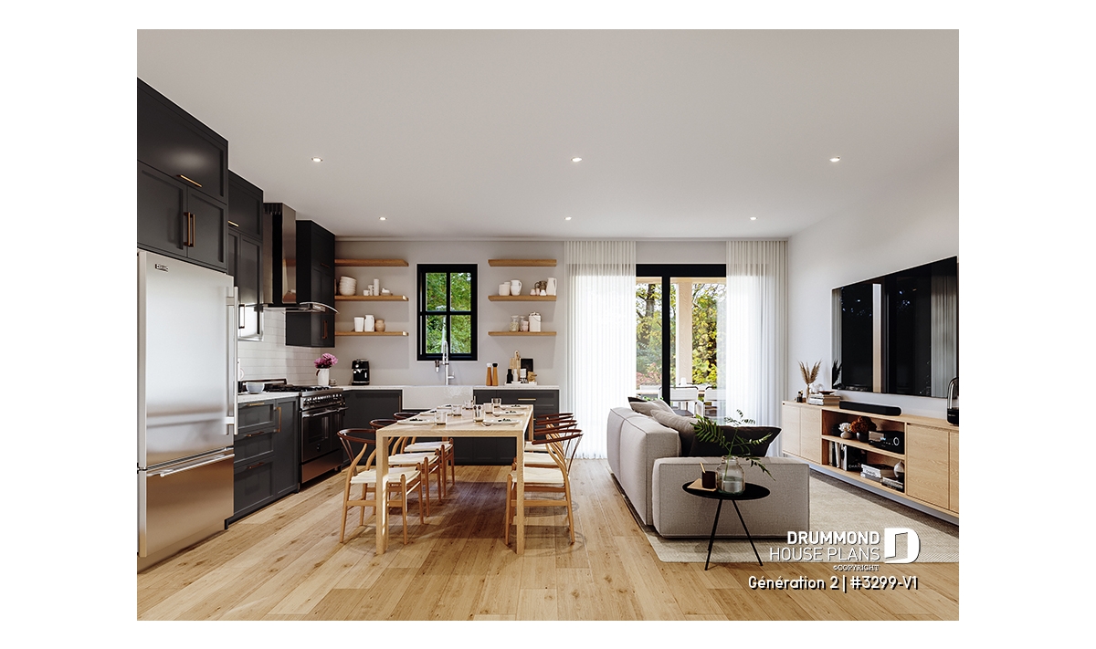 front - BASE MODEL - Generational house plan with 3 bedrooms and 2 baths in main apartment - Génération 2