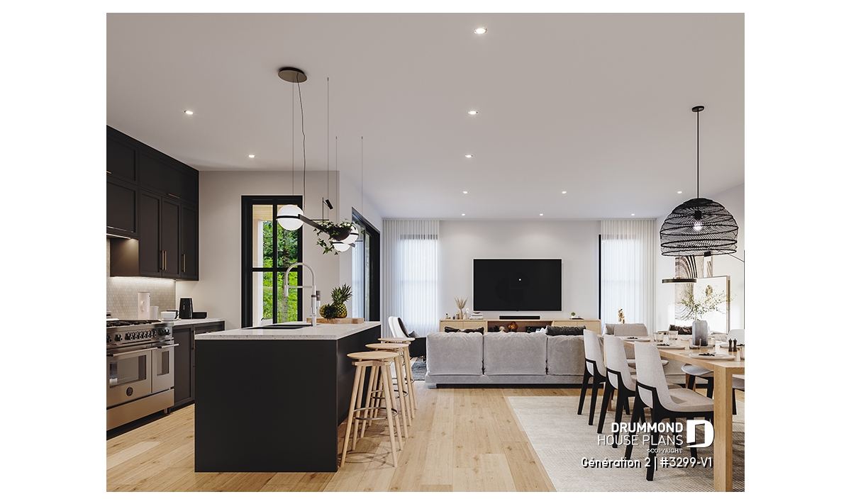 1st level - Generational house plan with 3 bedrooms and 2 baths in main apartment - Génération 2