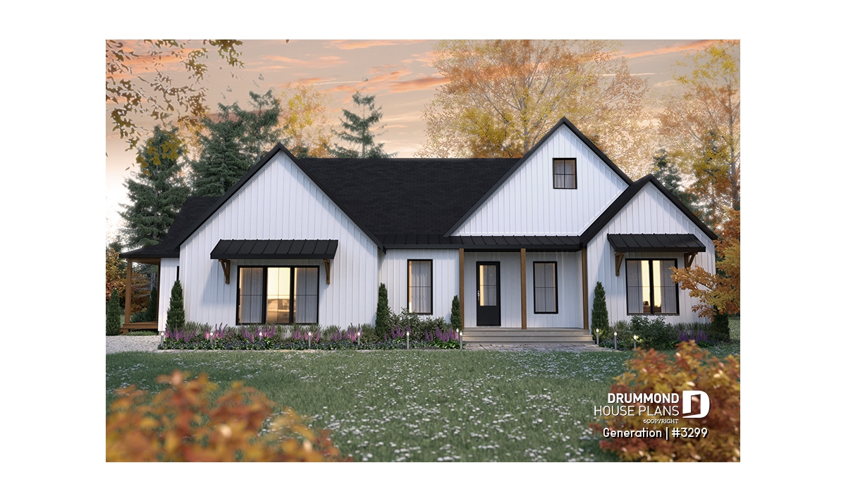 Trendy Inter Generational Modern Farmhouse house plan with 9 'ceilings throughout.