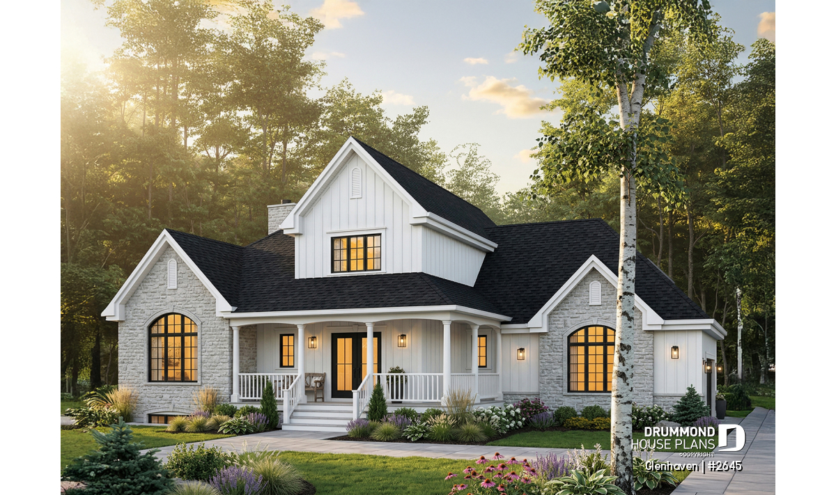 The GLENHAVEN house plan (#2645) perfectly blends classic country charm with spacious, family-oriented living inspired by traditional American home design. Warm, well balanced and thoughtfully organized, this home plan offers generous proportions, inviting outdoor spaces and an interior layout designed to support everyday comfort as well as memorable gatherings.
