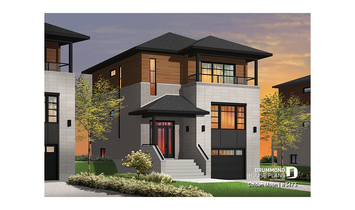Derived from original plan 2453, this home is an extremely attractive model for narrow, sloping lots. A basement entry garage and generous storage area are sure to be appreciated.