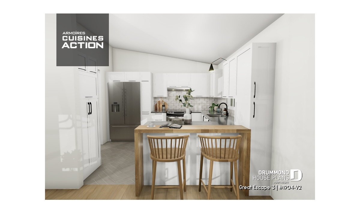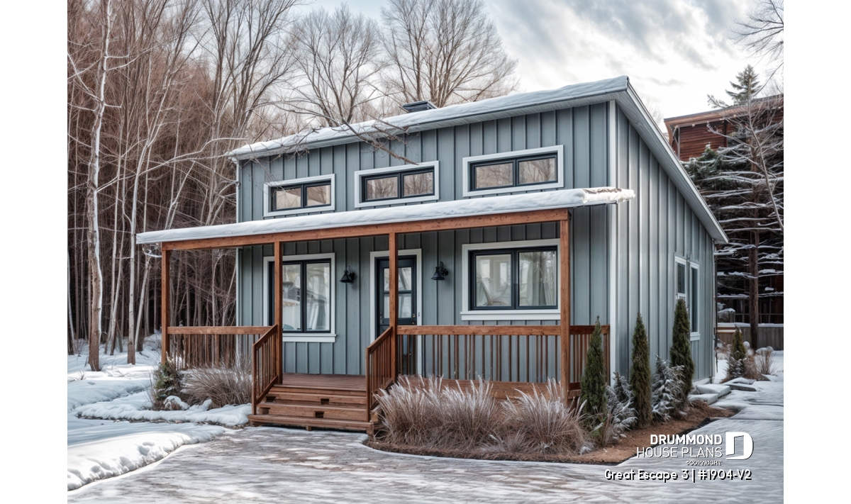 This modern 4-season chalet plan combines style, efficiency, and friendliness. An ideal choice for enjoying a warm, bright, and lasting living environment on a budget.