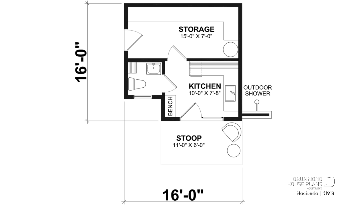 HACIENDA Pool House Plan (#1918) – 16' x 16' Cabana with Kitchenette, Storage & Outdoor Shower!