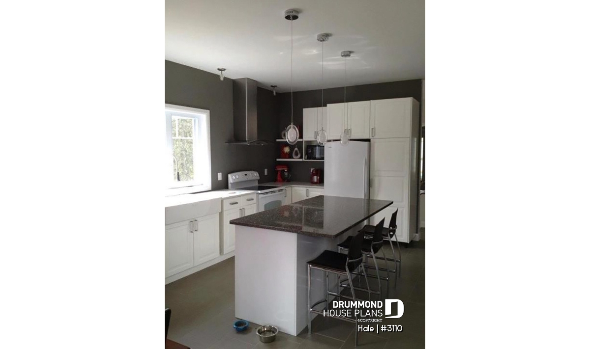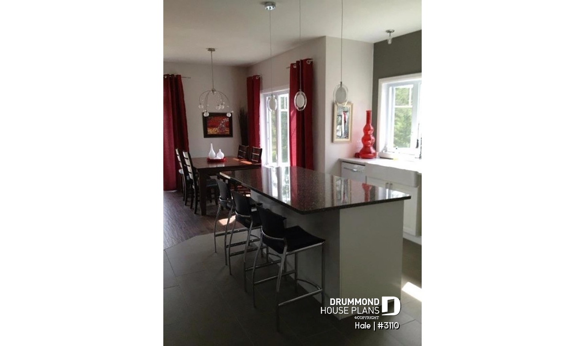 9' Ceiling. Closed foyer with coat closet. Covered front porch. Three-sided fireplace shared by family and dining rooms. Kitchen island with lunch counter.