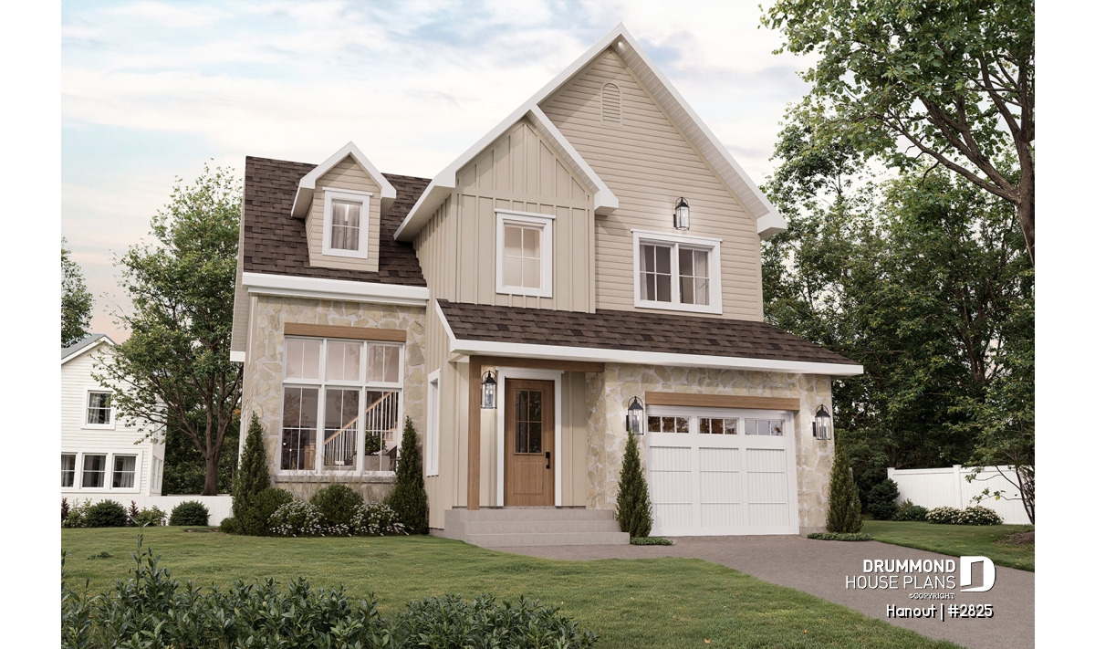 Modern Craftsman-style two-story home with attached garage.