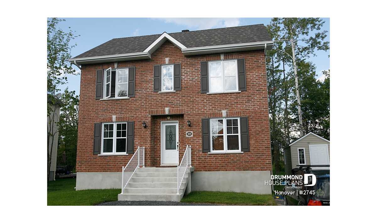 Simple lines, a set back front door, a brick façade and persians on the windows of the main façade, all these assets decorate this house agreeably. It is also an interesting fenestration in each room, particularly the triple windows in the dining room and kitchen.