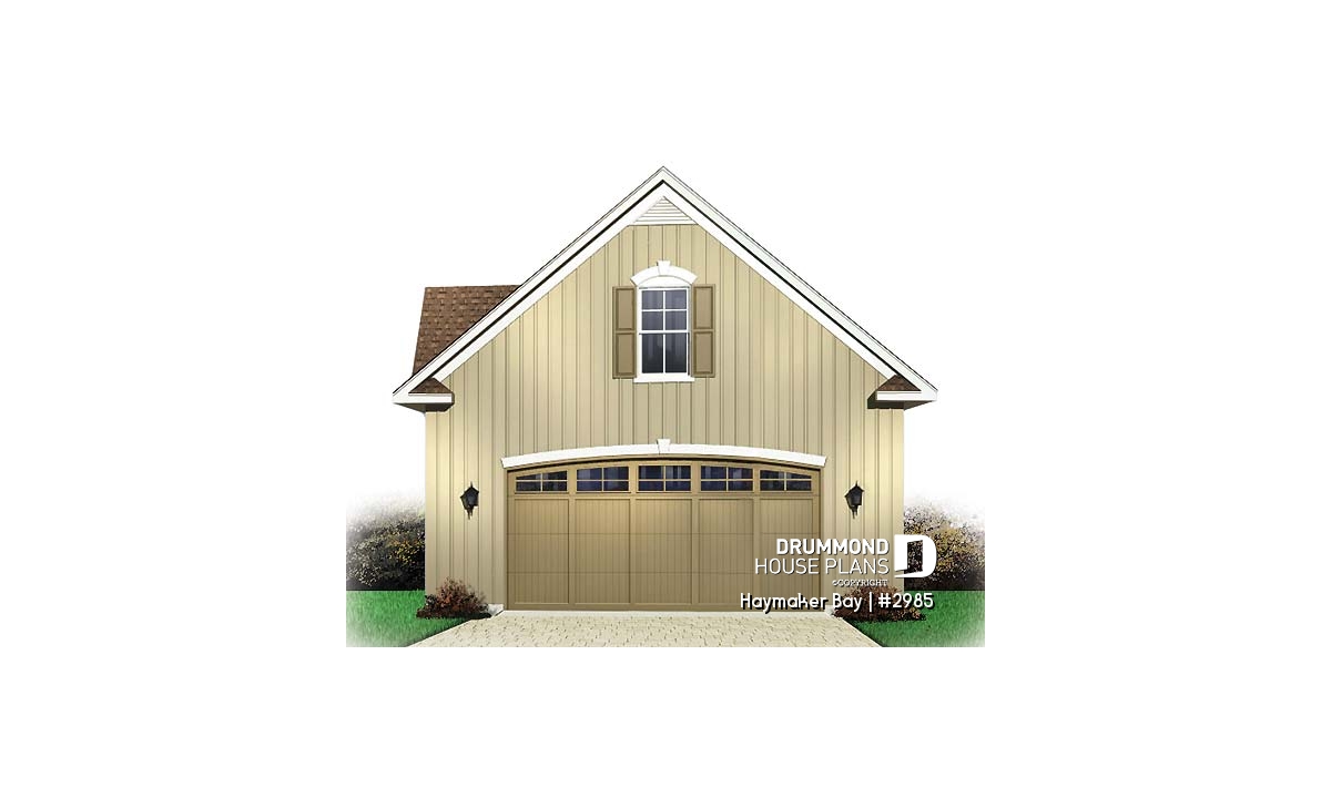Board and batten cladding, shutters and quality moldings ensure this garage will be a welcome addition to your home.