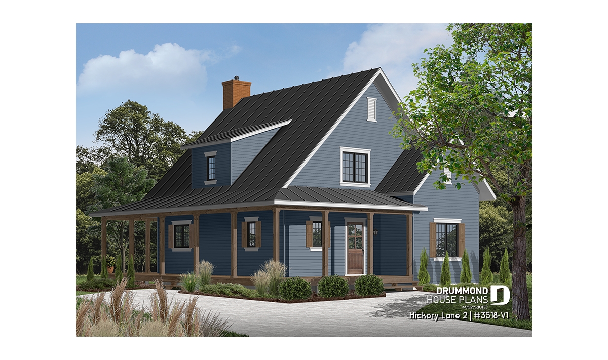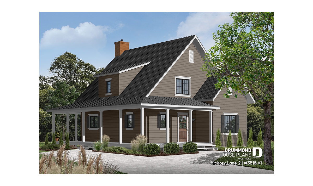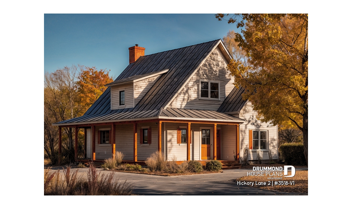 Discover an inviting and thoughtfully expanded Modern Farmhouse plan that blends warmth, practicality, and timeless rural charm. Inspired by the highly sought-after Hickory Lane design, this enhanced version offers nearly 250 sq.ft. of additional living space, thanks to a strategic 4-ft lateral expansion that elevates comfort on both the main and upper floors.