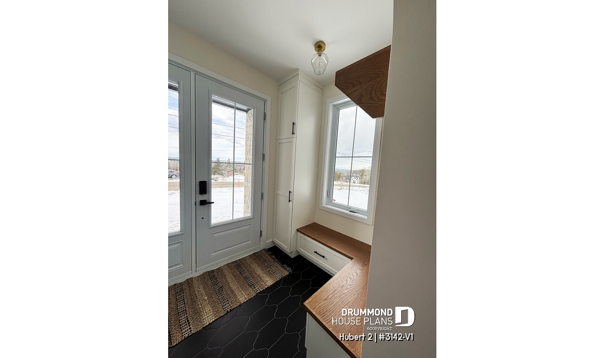 Front entry and garage access both include a practical built-in bench and a spacious closet.