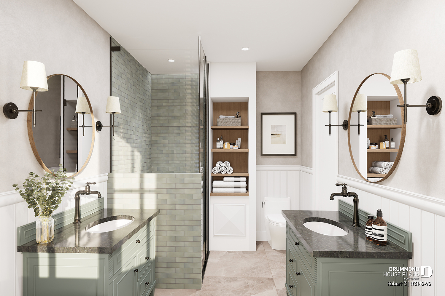 With its double garage offering direct access to the mudroom area, the HUBERT 3 house plan (#3142-V2) delivers a balanced, welcoming, and adaptable ranch-style home—perfectly suited to contemporary American living.