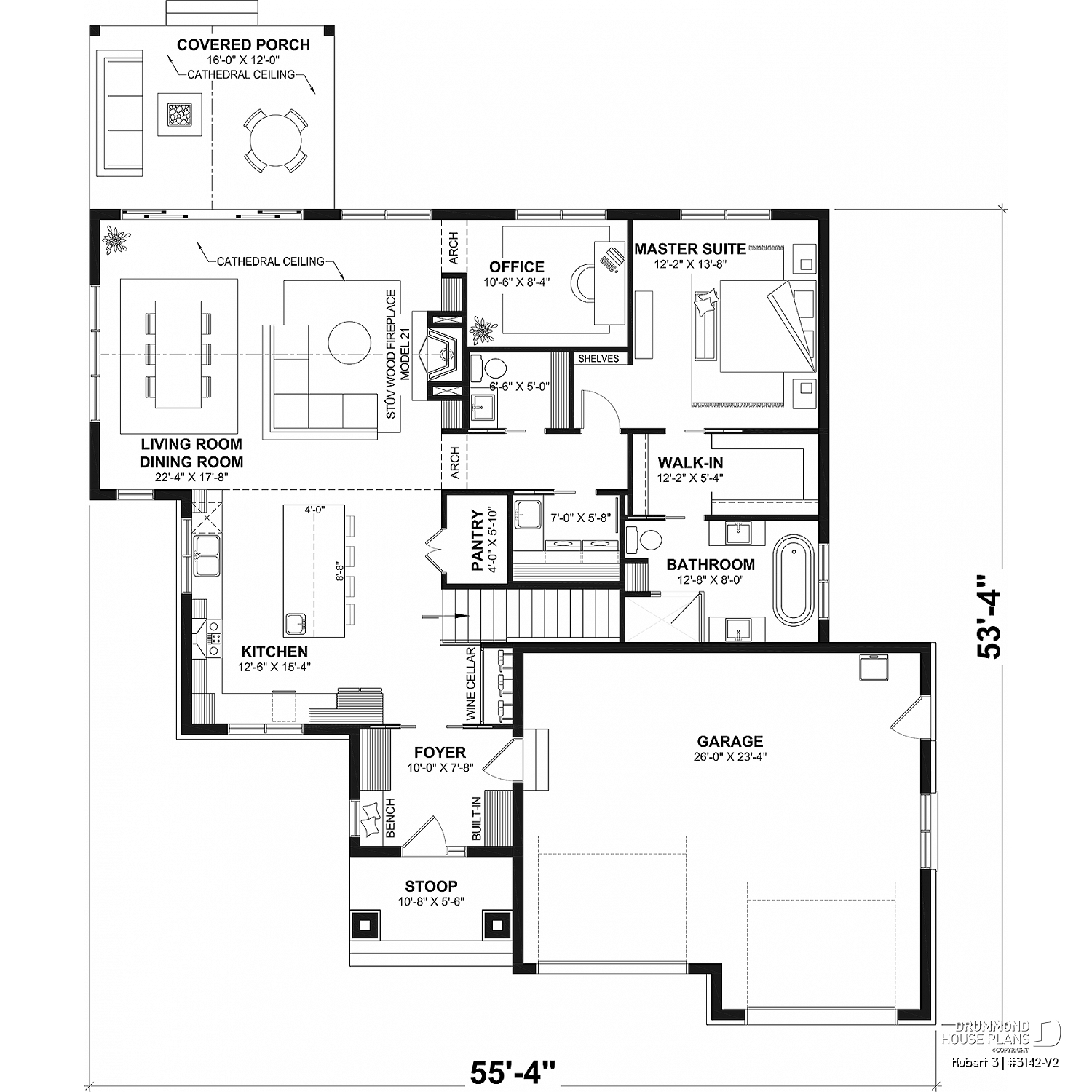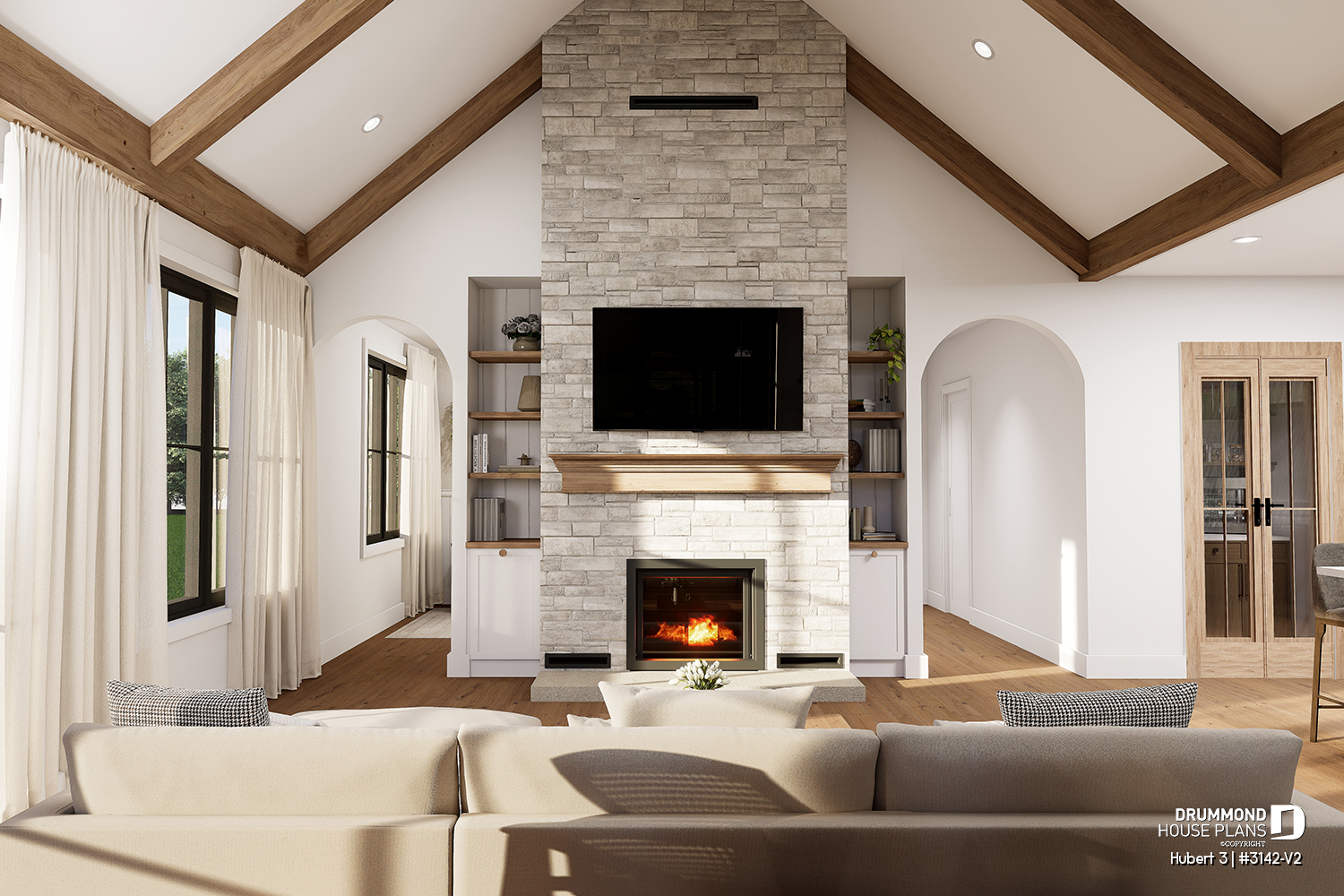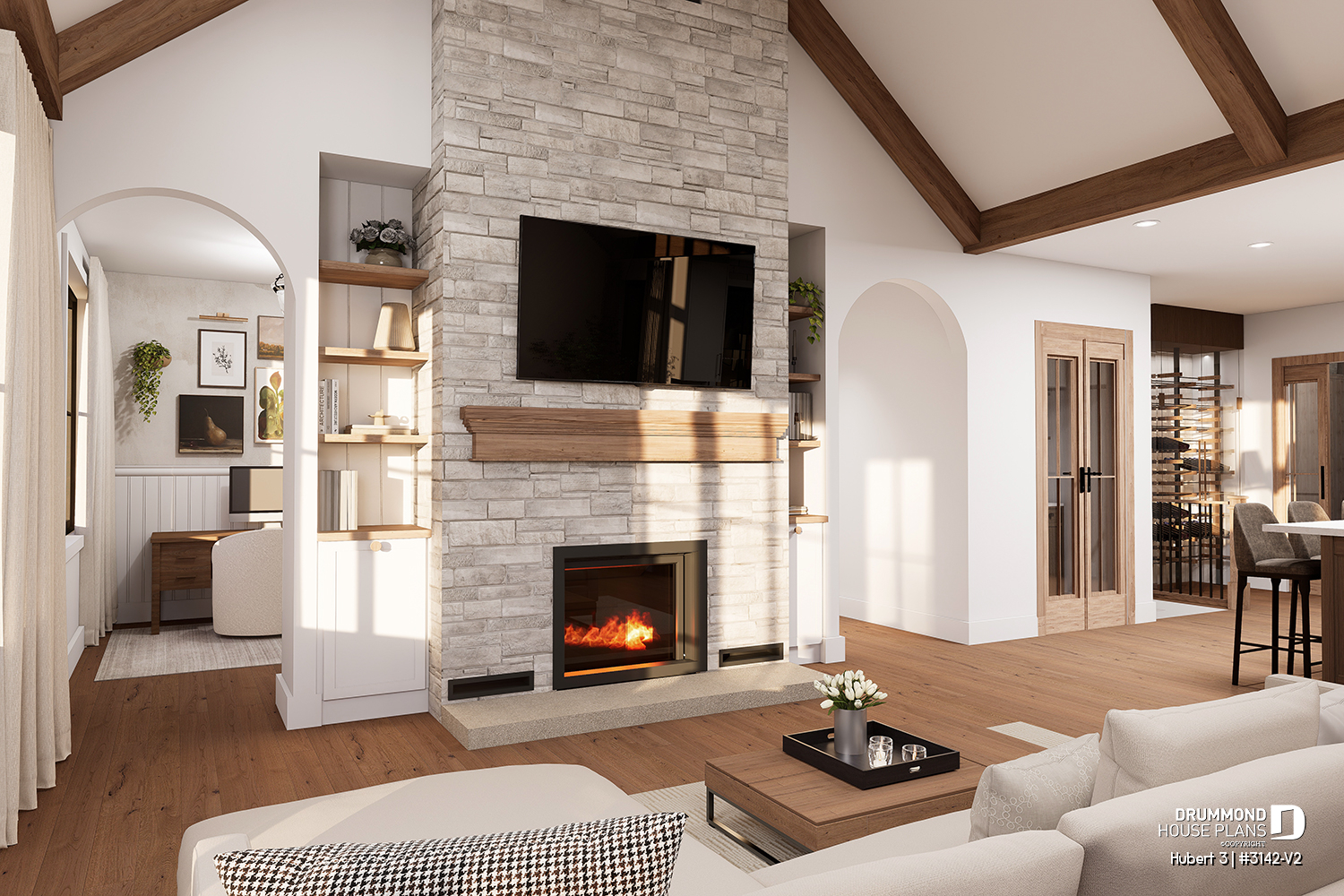 HUBERT 3 House Plan (#3142-V2) – Single-Story Ranch with STÛV Fireplace and Double Garage, Timeless Comfort and Style