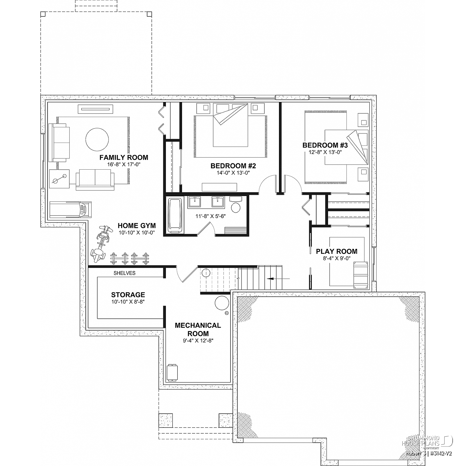 *If you wish to purchase the finished basement plan, as presented on this plan page, please select this option in the shopping cart, in the "Selection of foundation type" section. If you do not select this option, you will receive the unfinished full basement option, at no extra charge.