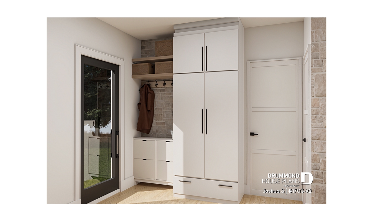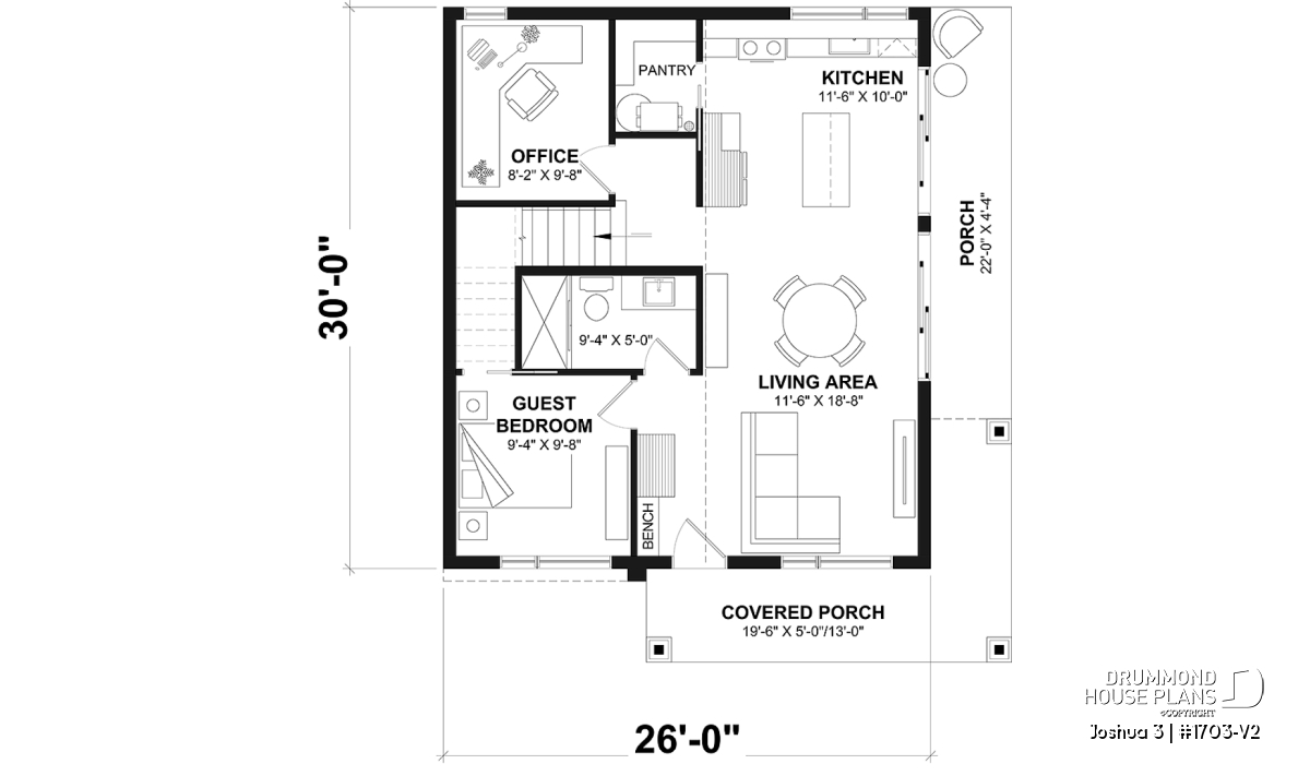 Joshua 3 house plan (1703-V2) offers a total living area of 1200 sq. ft. All ceilings are 8 ft. high. The planned foundation is a floating slab, although other foundation options are available.