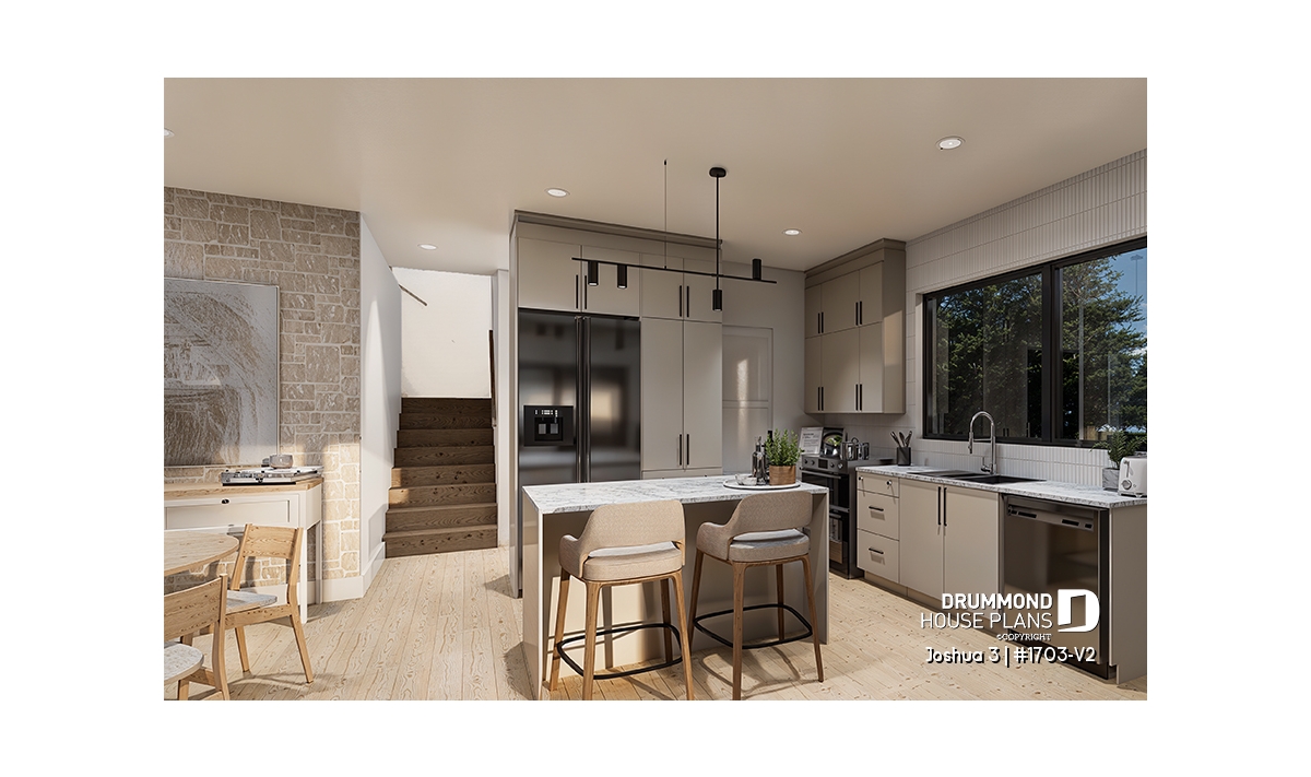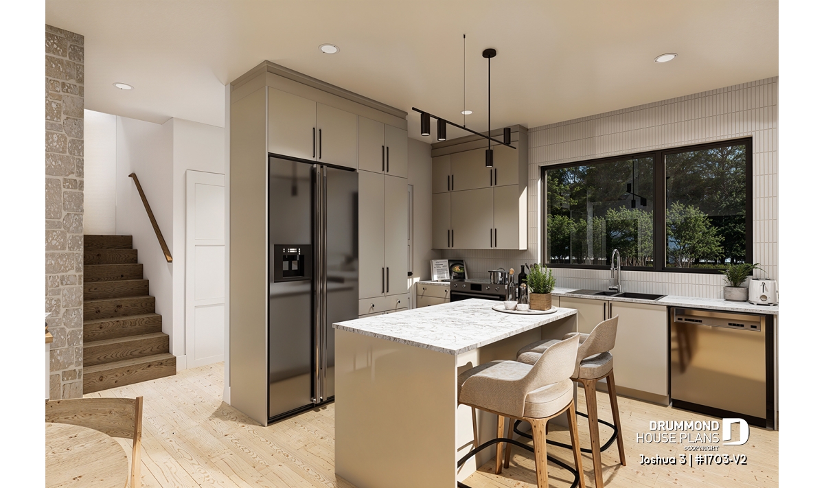The kitchen offers an island as well as a walk-in pantry. A guest bedroom (bedroom #2), an office (or bedroom #3) and a shower room complete the ground floor.