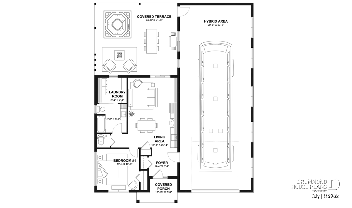 The JULY (#6982) is a compact yet highly versatile home designed to offer comfort, flexibility, and long-term adaptability. Thoughtfully planned, this model stands out for its efficient layout and its impressive RV garage, making it well suited to a variety of lifestyles today and in the future.