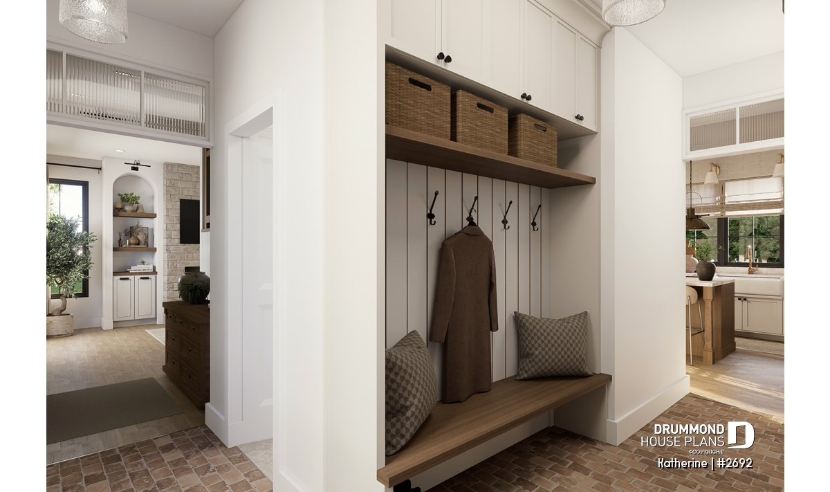 Direct access from the garage to the kitchen for smooth circulation with groceries.