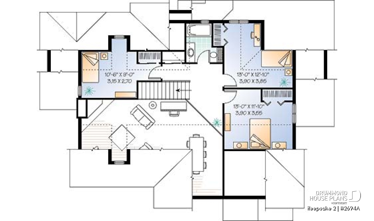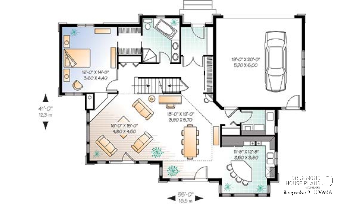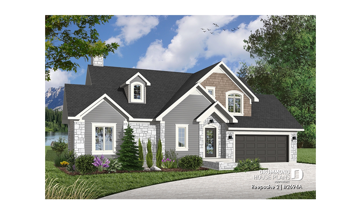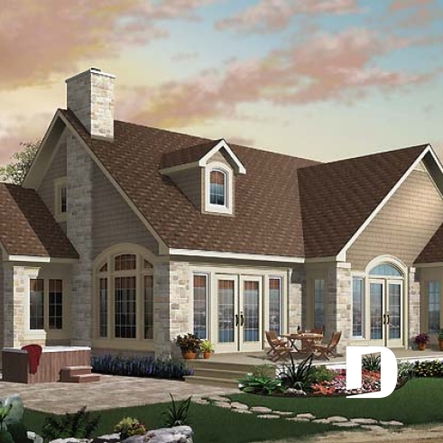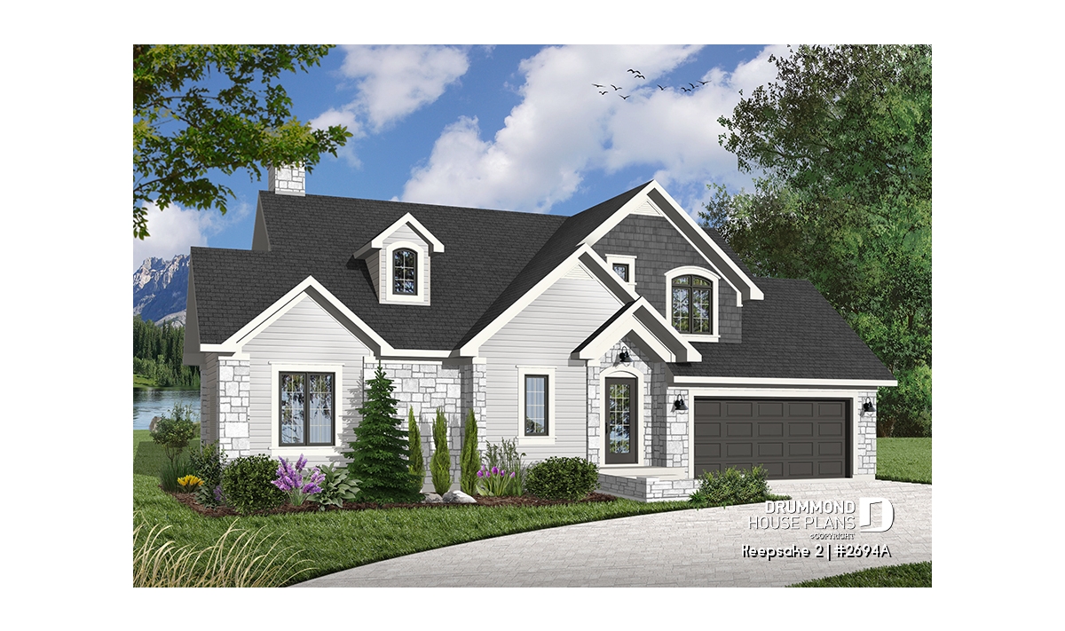It’s hard to believe, but this main level offers a panoramic view from the kitchen, breakfast area, dining room, living room and the master bedroom, thus meeting the frequent requests from many future homeowners for a design which maximizes outside views for panoramic lots on a lake, riverside, or any other panoramic points of view. In addition, Drummond Designs proposes model 6916, with finished basement, for those whose building site slopes towards the rear.