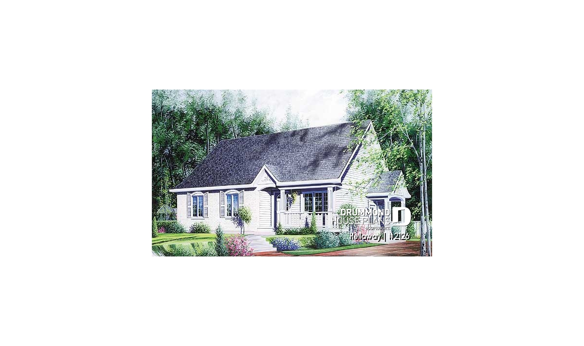 Shuttered windows, a simple roofline, covered front porch and covered side entry dress up this quaint country cottage. Step in from the covered front porch and stow your coat in the front closet. An open living triangle is created by a living room open to the dining room and kitchen. A peninsula bar provides additional work space and casual meal space. Patio doors off the dining area provide a quick escape to the back yard.