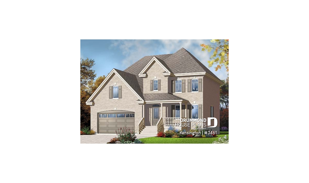 Inspired by Drummond House Plans models 2461 and 3408, this cottage-style home impresses with an interior offering four bedrooms and a wide range of amenities.