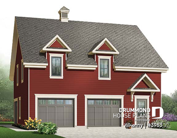 The Kilkenny (#3983) garage plan offers a triple-car country-style design distinguished by its generous layout and exceptional flexibility. Enhanced by two attractive dormers, its architecture blends naturally with a wide range of residential styles, including traditional, contemporary and rural-inspired homes.