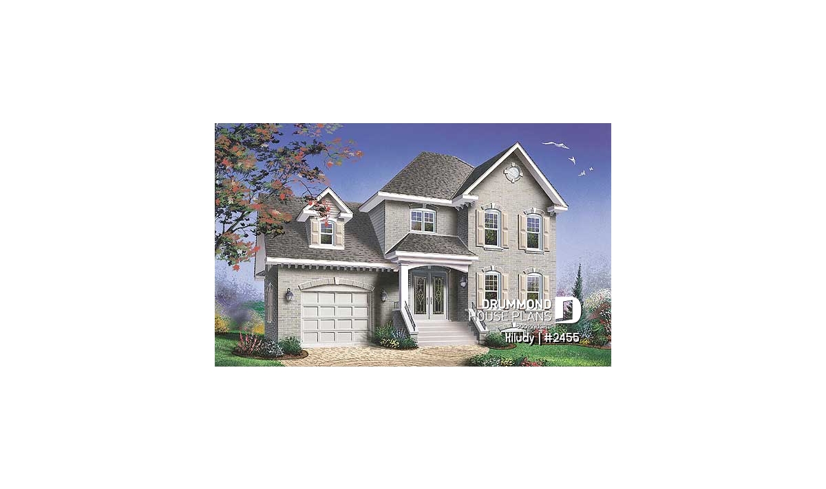 Built-ins, unfinished bonus space (283 sq.ft., 25.47 sq.m.) above garage, shutters, dormer, covered front balcony.