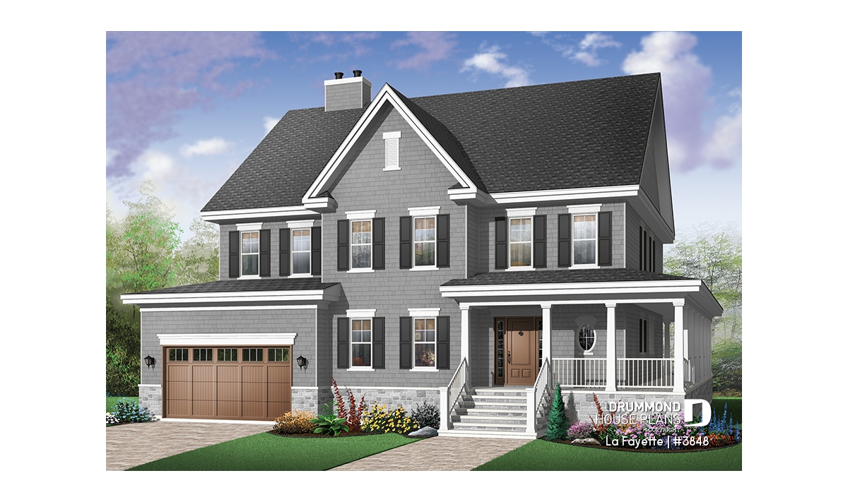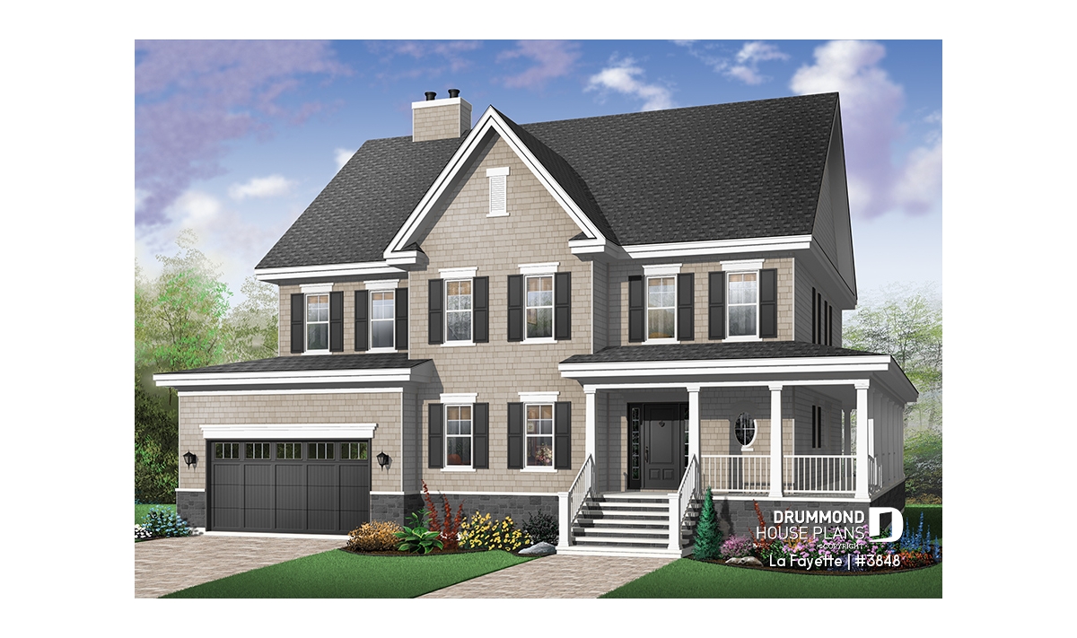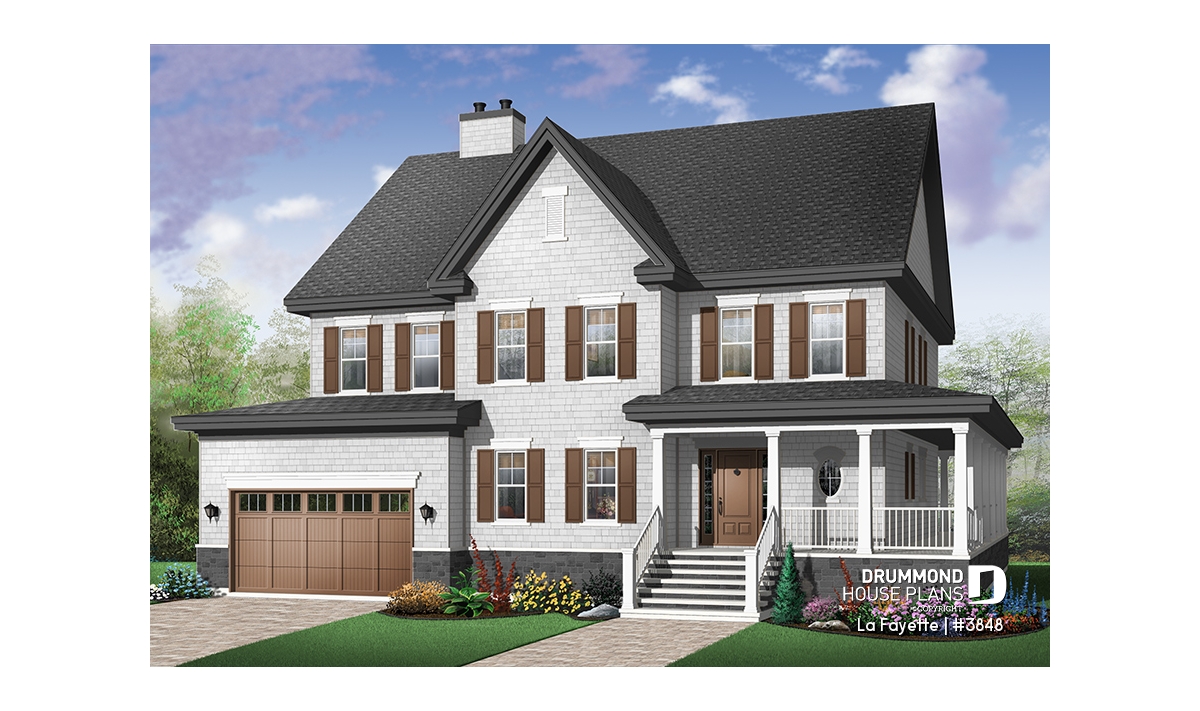 Designed with symmetry that offers balance outside, a double garage and a beautiful, three sided covered porch this stunning cottage offers timeless design and a comfortable 3,600 sq. ft. floor plan with a basement that can be finished to suit your specific needs.
