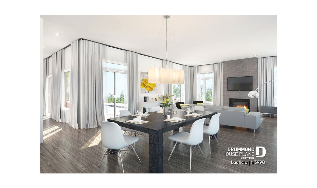 Living room with fireplace, lots of natural lights and direct access to the pool.