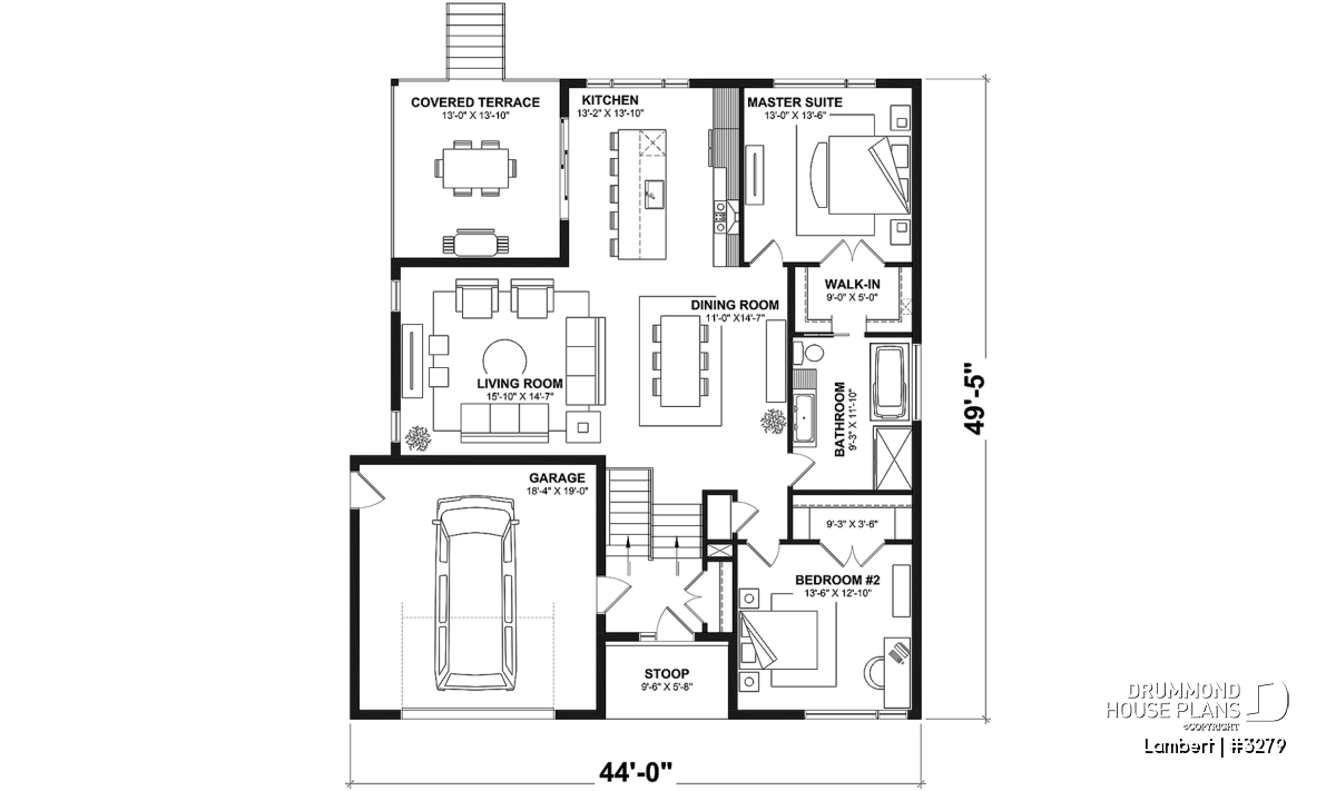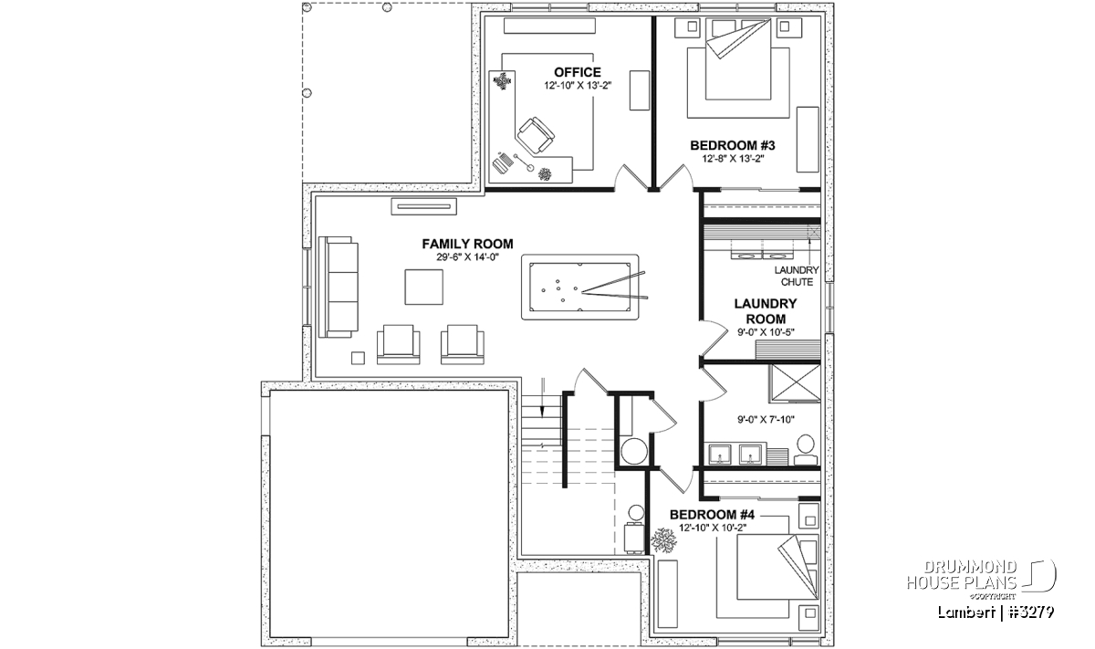 *If you wish to purchase the finished basement plan, as presented on this plan page, please select this option in the shopping cart, in the "Selection of foundation type" section. If you do not select this option, you will receive the unfinished full basement option, at no extra charge