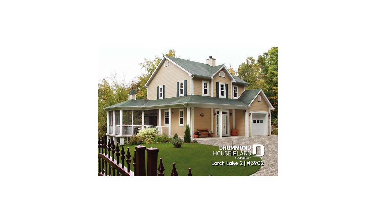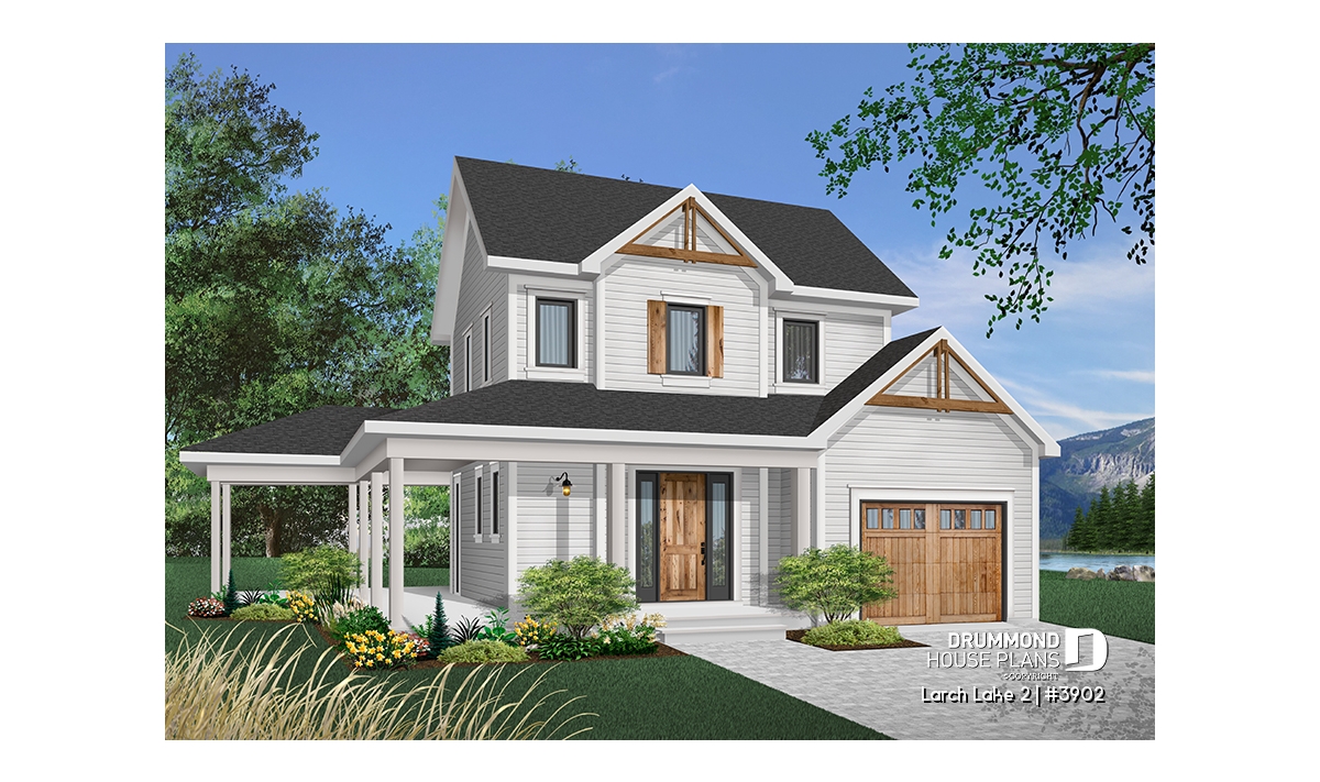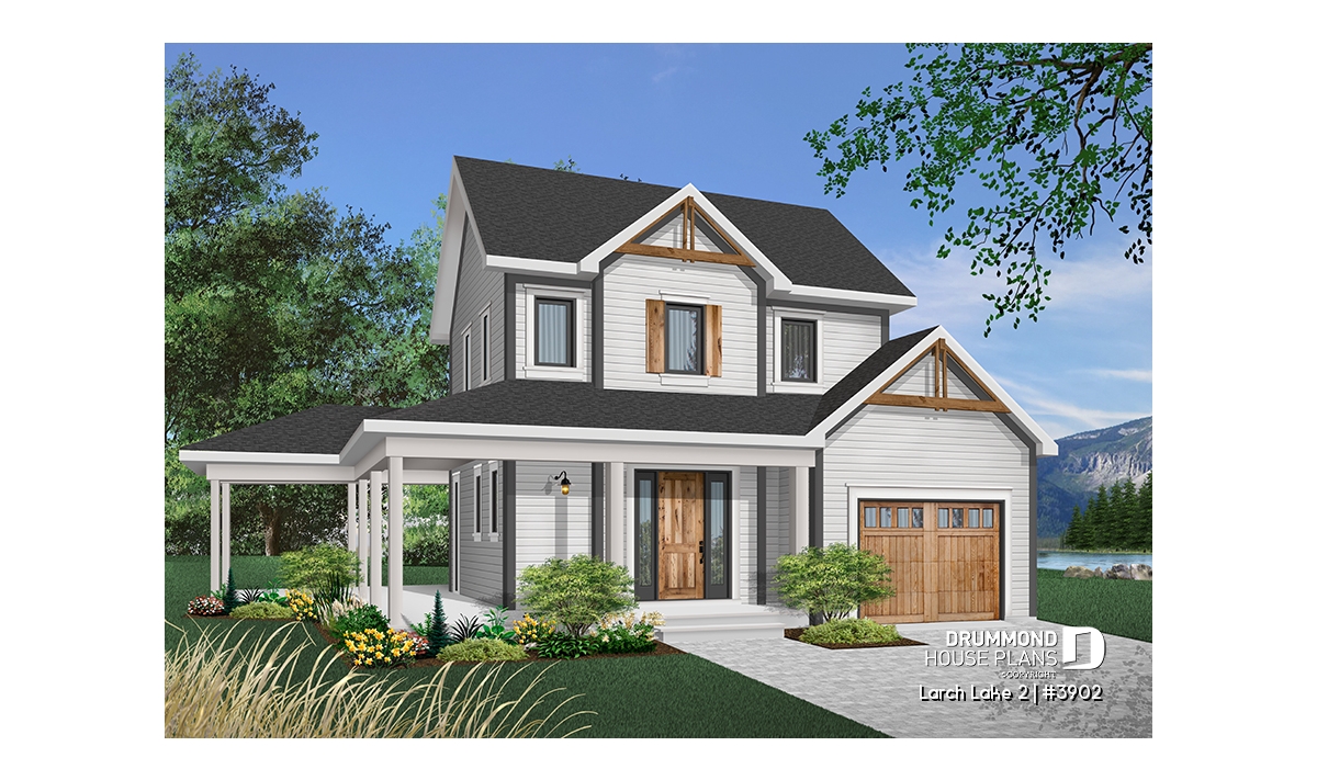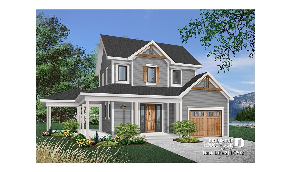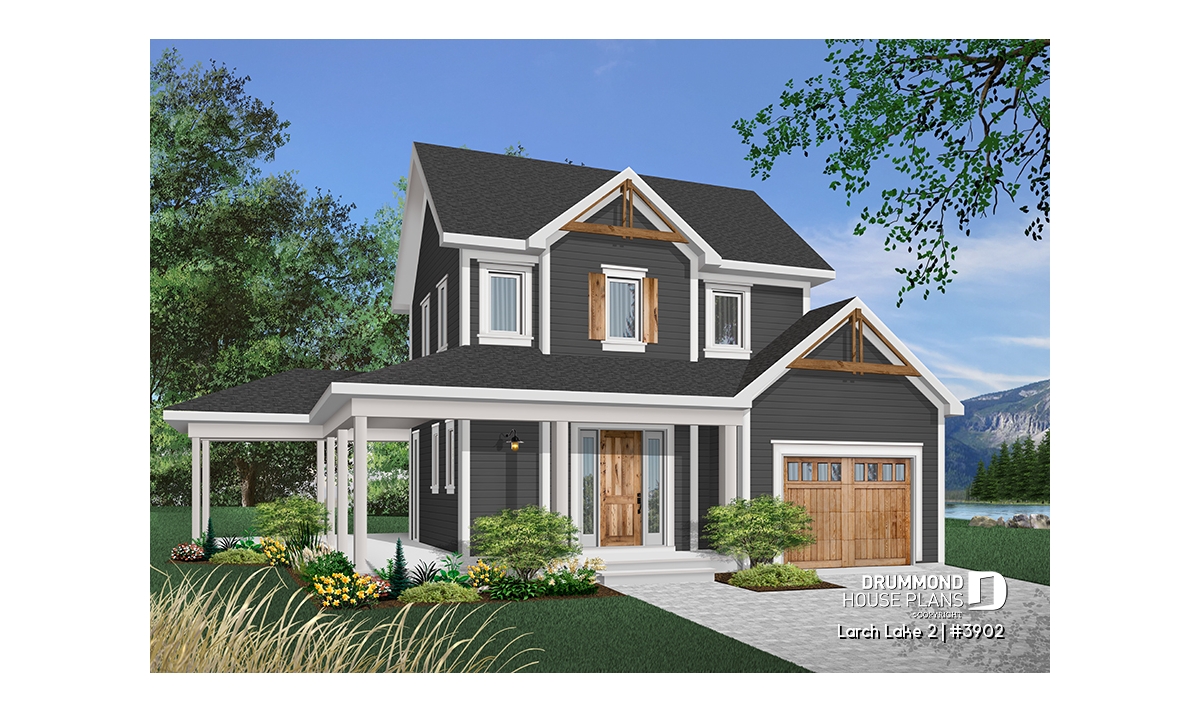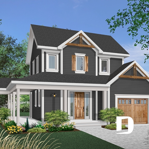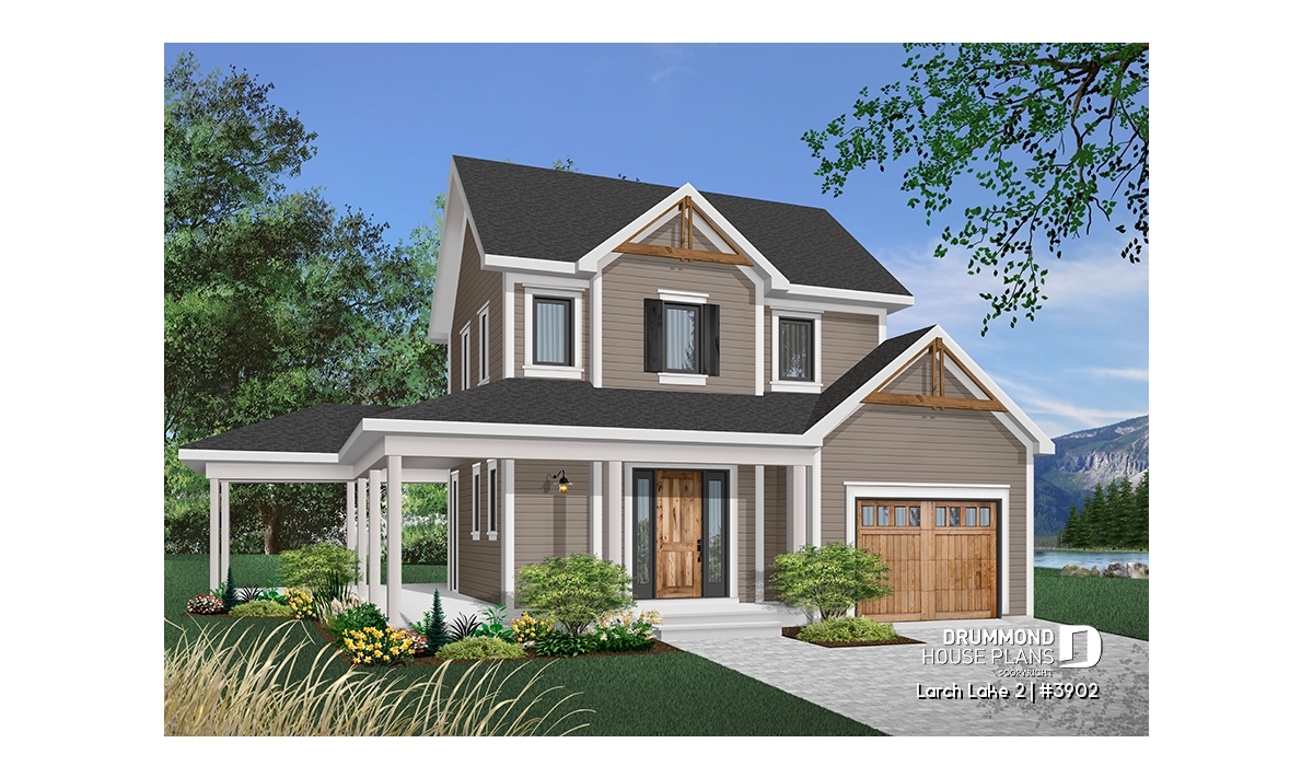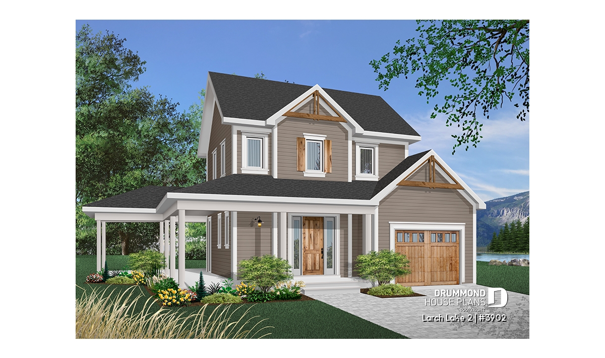 This slender plan (28 feet wide, not including porches) combines the urban preference for an attached garage with the country charm of panoramic view, rear-oriented interior. Model 2937, from which this plan was inspired, is the source of other similar models whose popularity never ceases to grow.