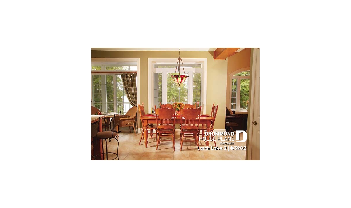 Inside, an enclosed foyer features a generous coat closet and an adjoining guest bathroom/laundry combination. Entering the main living area, one is greeted by an entirely open-concept floor plan with subtle separation of kitchen, dining and living area. The living room seems even more spacious thanks to a partial cathedral ceiling. Indoor and outdoor areas are pleasantly merged by a ¾ wraparound veranda and adjoining outdoor dining room with charming cupola accent.