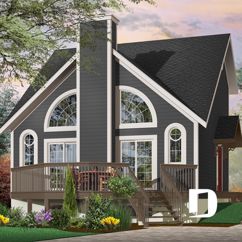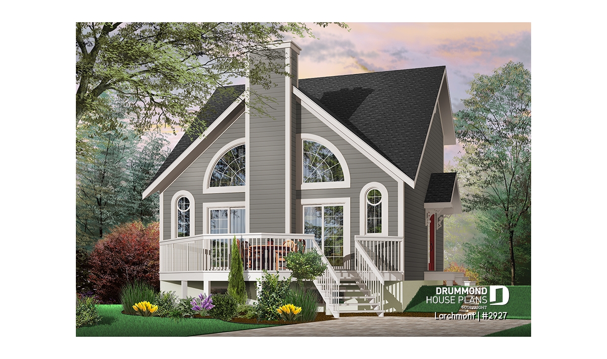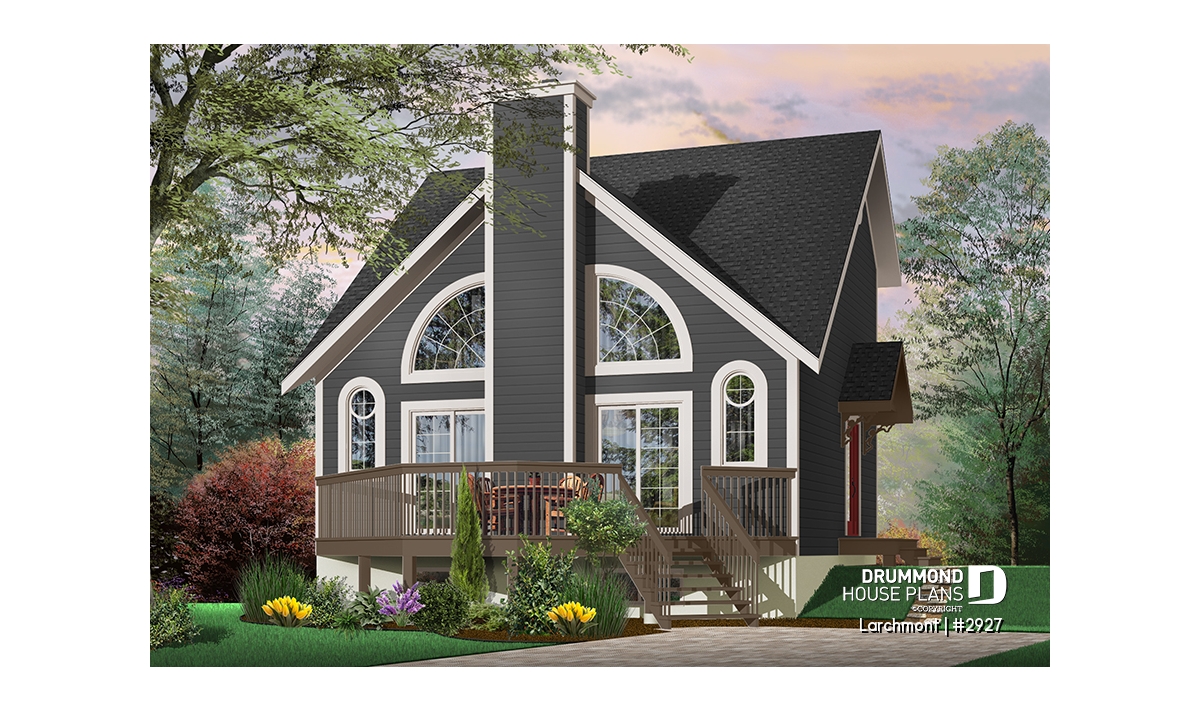 This cost-conscious model is one of the most popular of our chalet collection, with a balanced exterior and original windows, evenly distributed on either side of a central fireplace, and a very open interior.