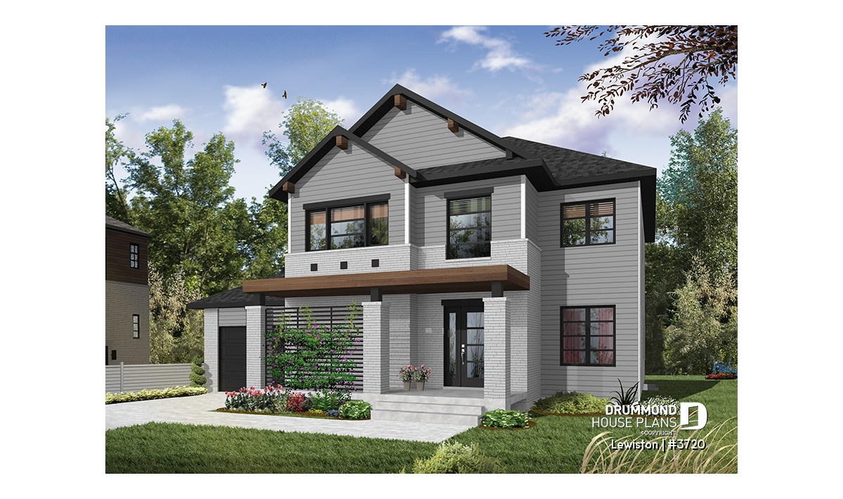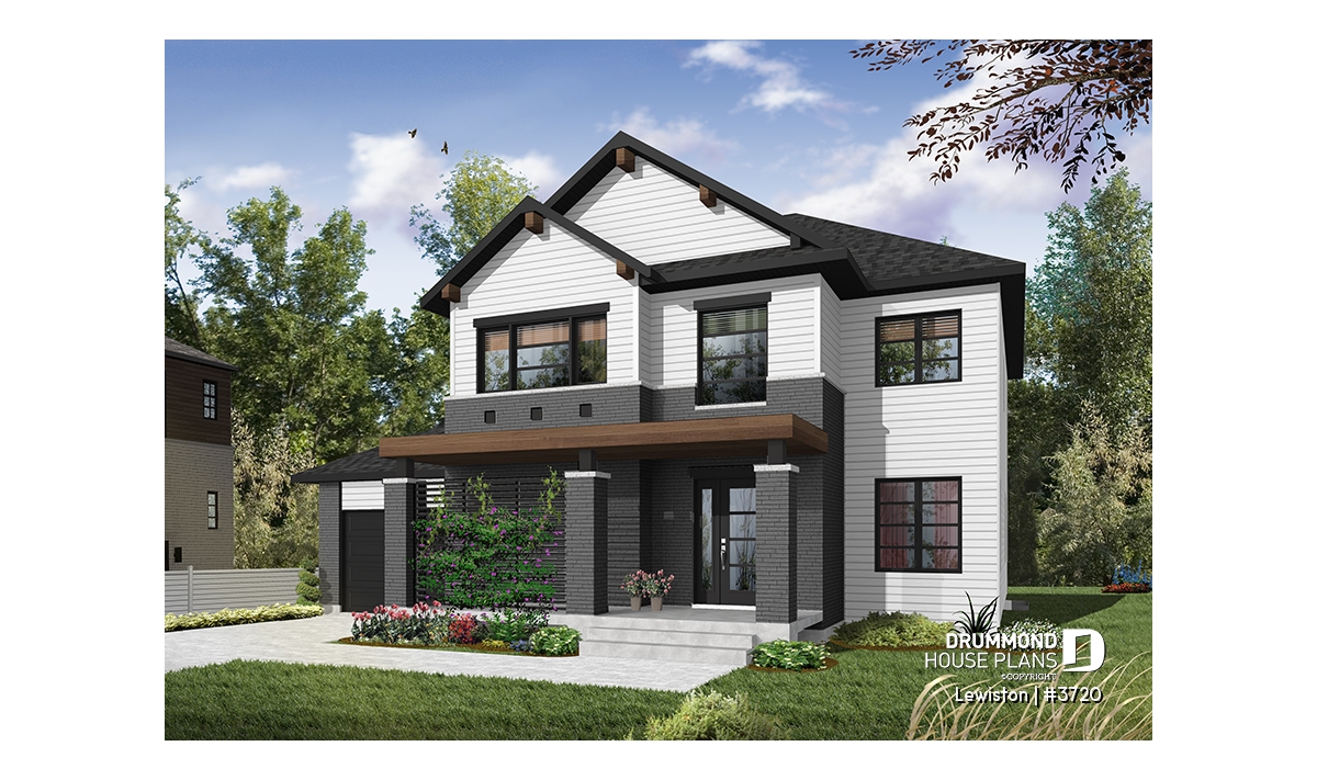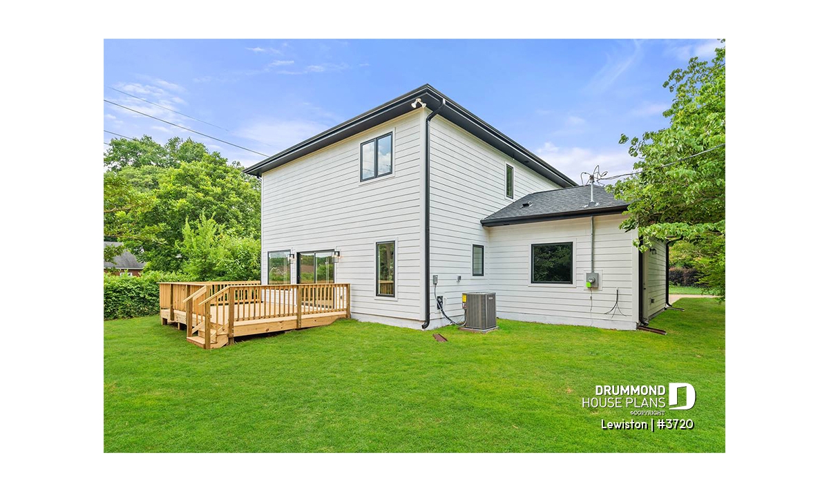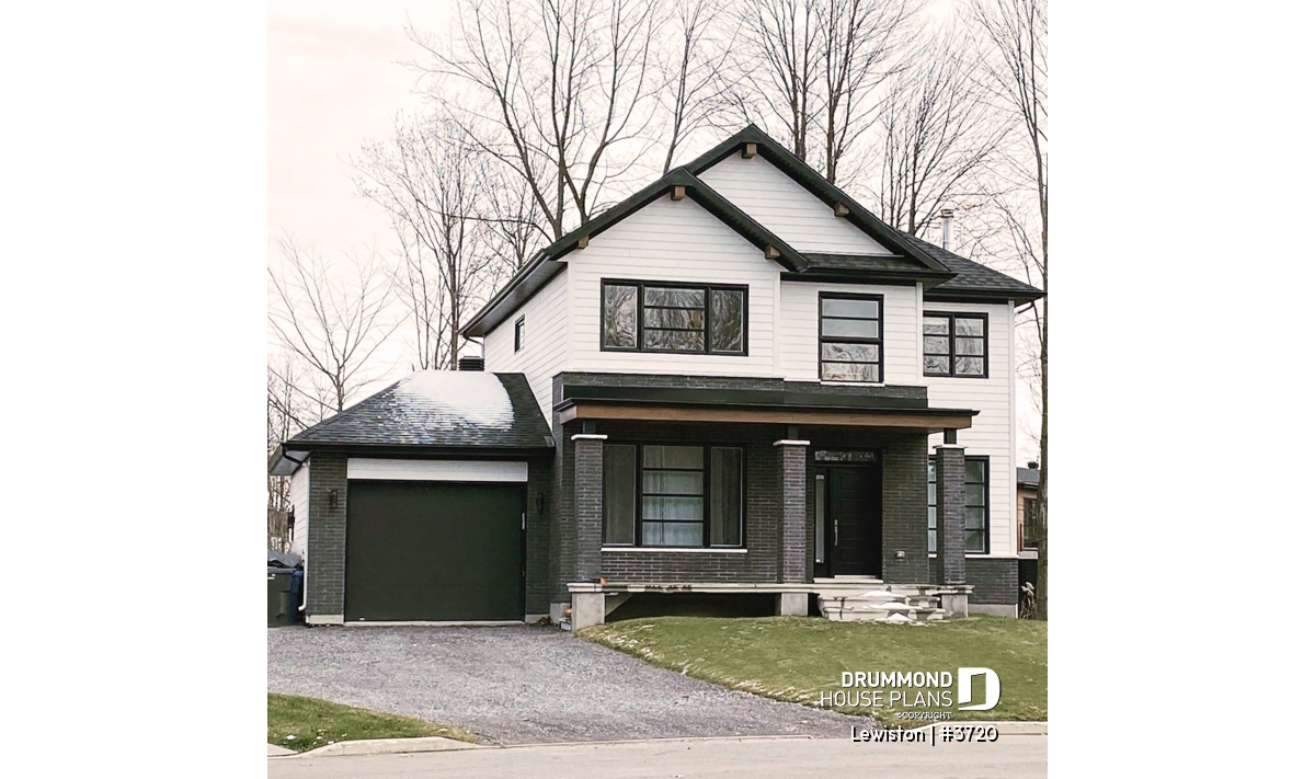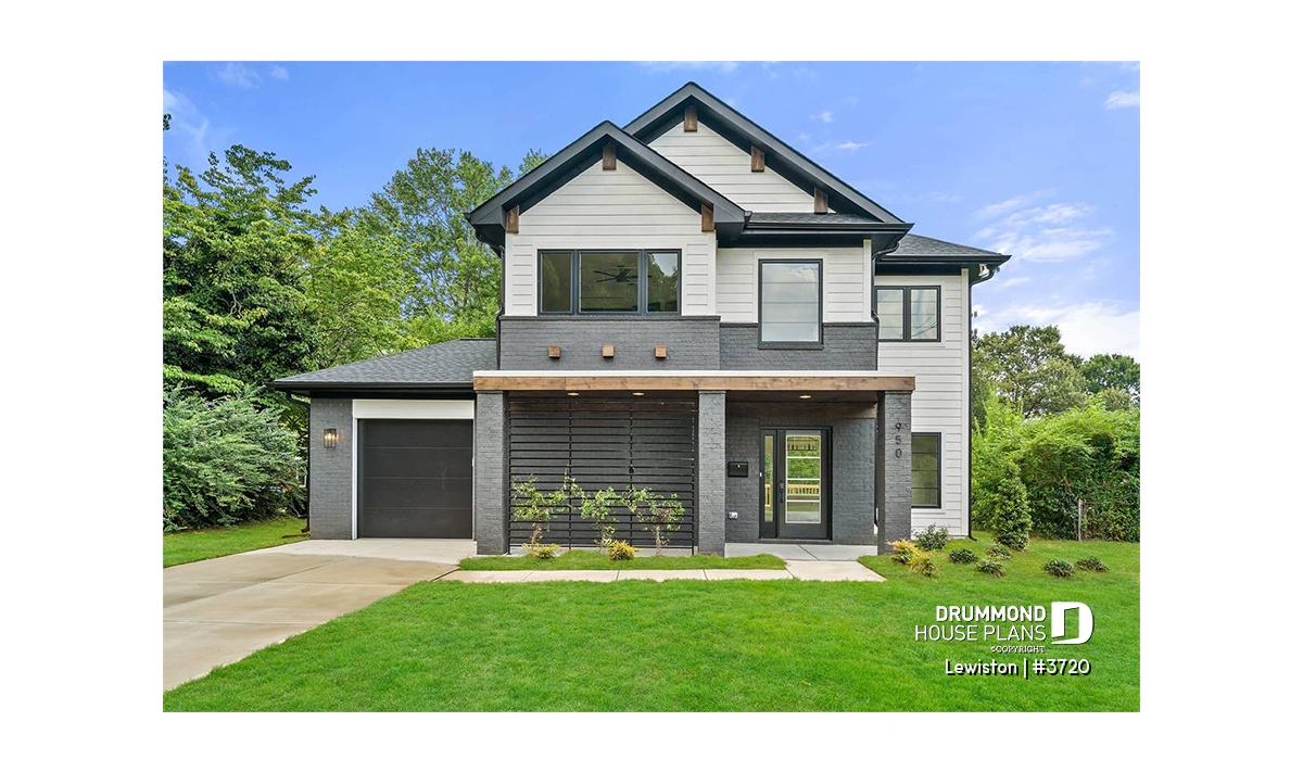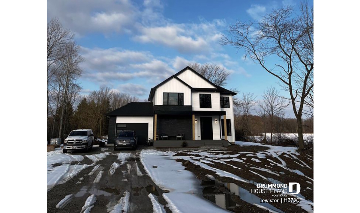 The Lewinston (#3720) house plan is a two-story home designed to meet the needs of large families or blended families seeking space, functionality and everyday comfort. Inspired by modern rustic design with a contemporary, zen approach, this model stands out for its attractive exterior and an interior layout thoughtfully planned for active family living, all within an accessible construction framework.
