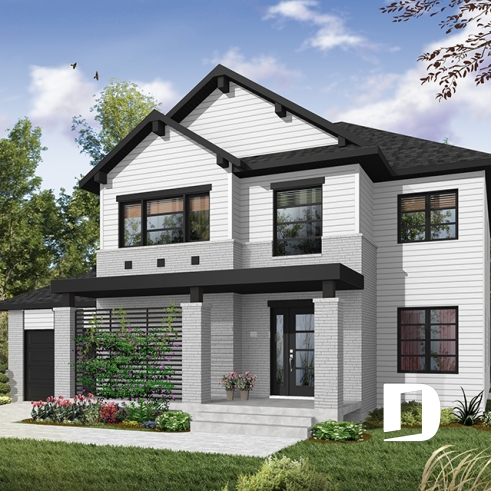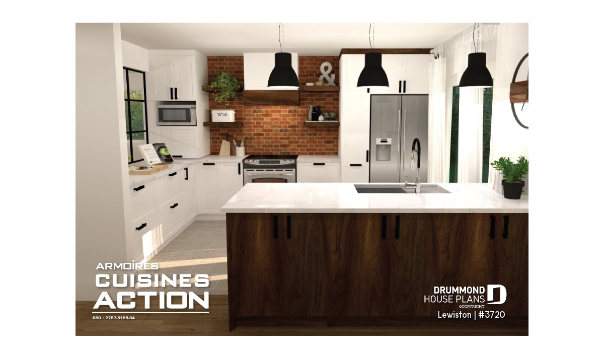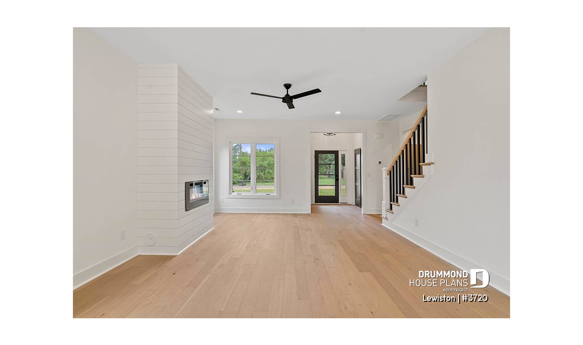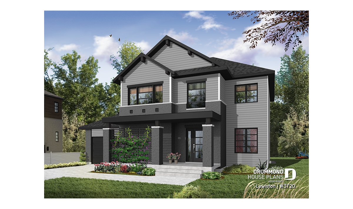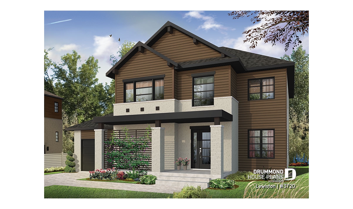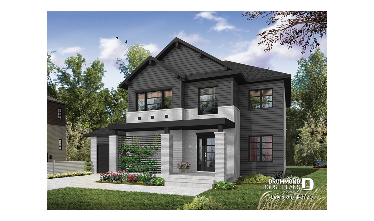 The Lewinston (#3720) house plan is a two-story home designed to meet the needs of large families or blended families seeking space, functionality and everyday comfort. Inspired by modern rustic design with a contemporary, zen approach, this model stands out for its attractive exterior and an interior layout thoughtfully planned for active family living, all within an accessible construction framework.