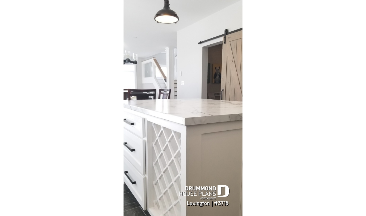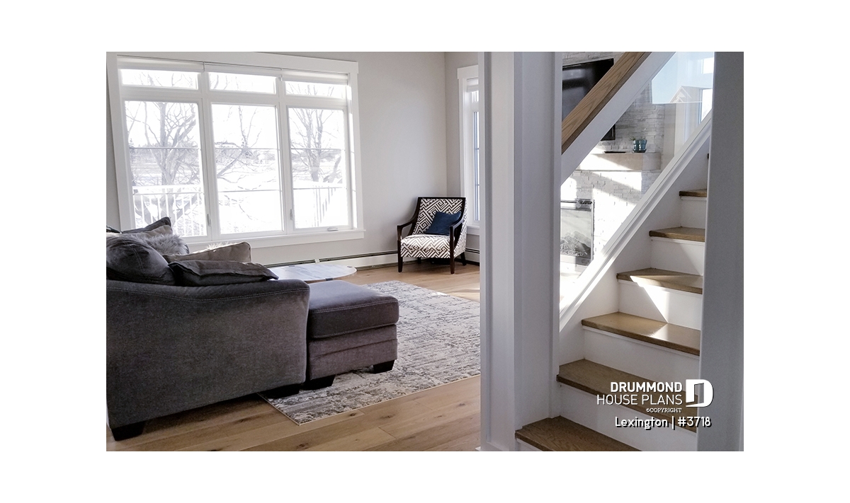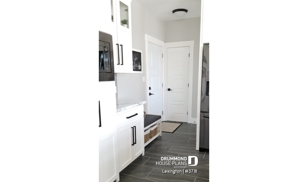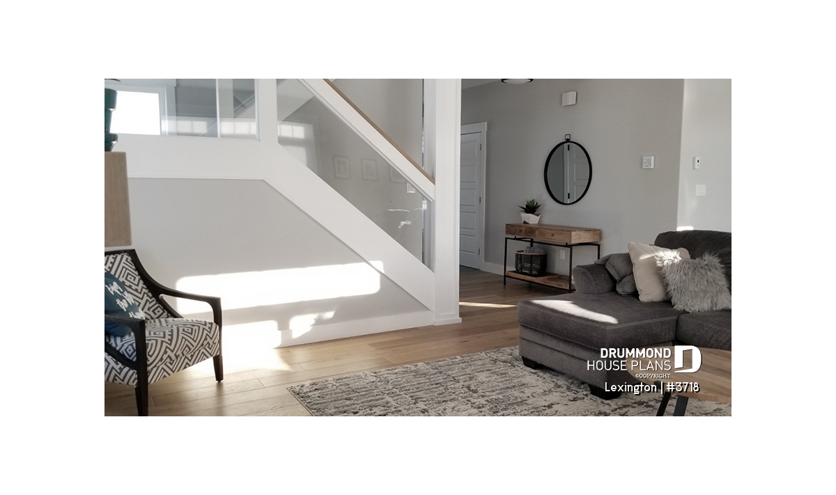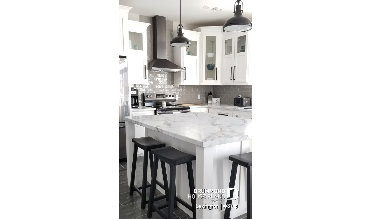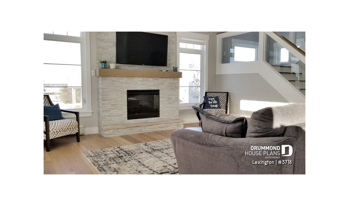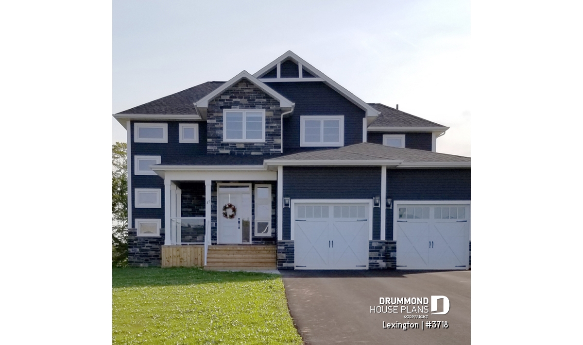 9' ceiling on main floor. Open floor plan with fireplace. 4 bedrooms. Practical access to kitchen area from double car garage. X-large covered deck. Unfinished basement and other foundation options available.