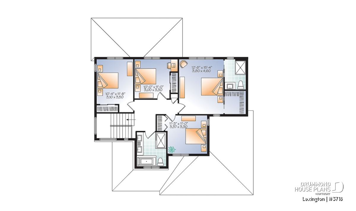 Upstairs, the 4 bedrooms include a master suite with walk-in closet and a full bathroom. The other 3 bedrooms share a second full bathroom that boasts a double vanity, pedestal bath and large shower enclosure.