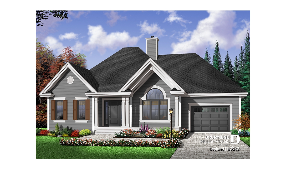 Large covered front porch. Lovely living room and dining rooms with see-thru fireplace. Cathedral ceiling in living room. Kitchen with lunch counter. Two bedrooms one of which has a walk-in closet. Bathroom with separate shower and dual sinks.