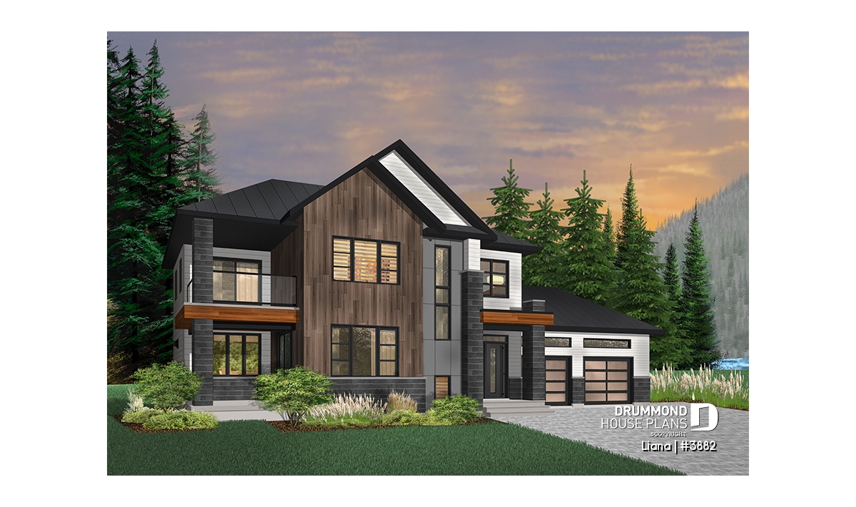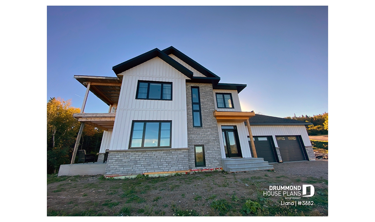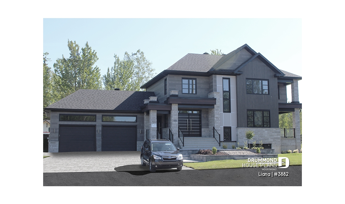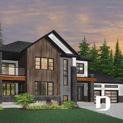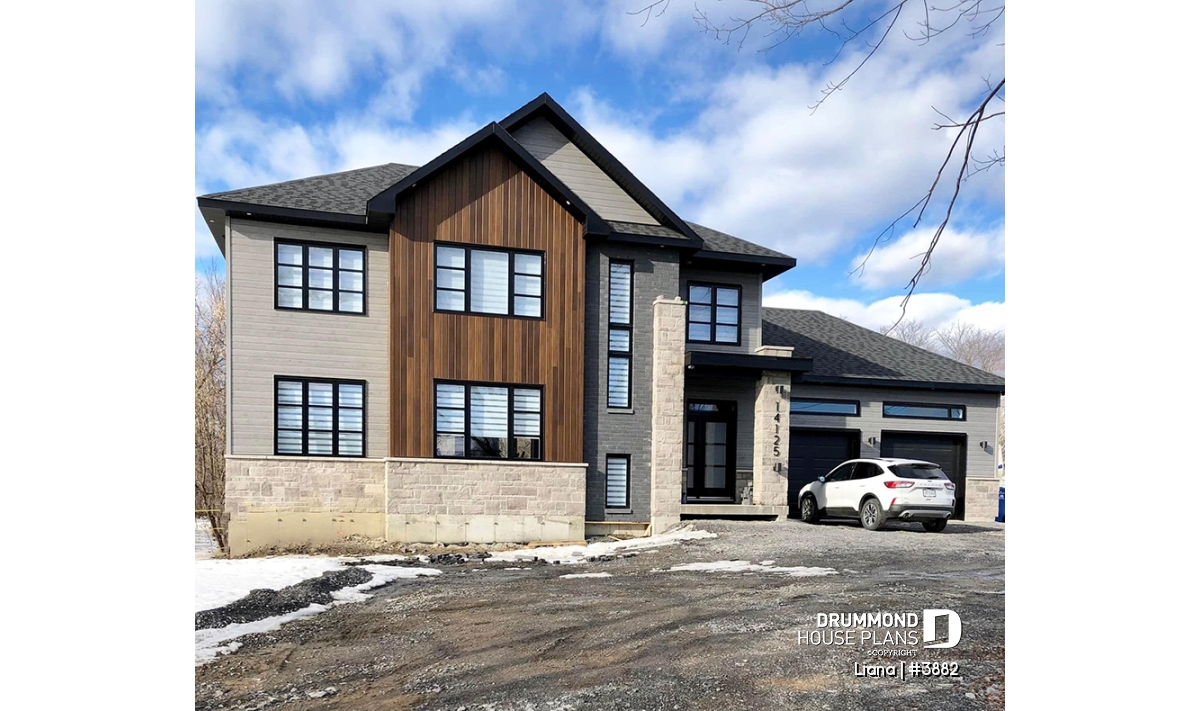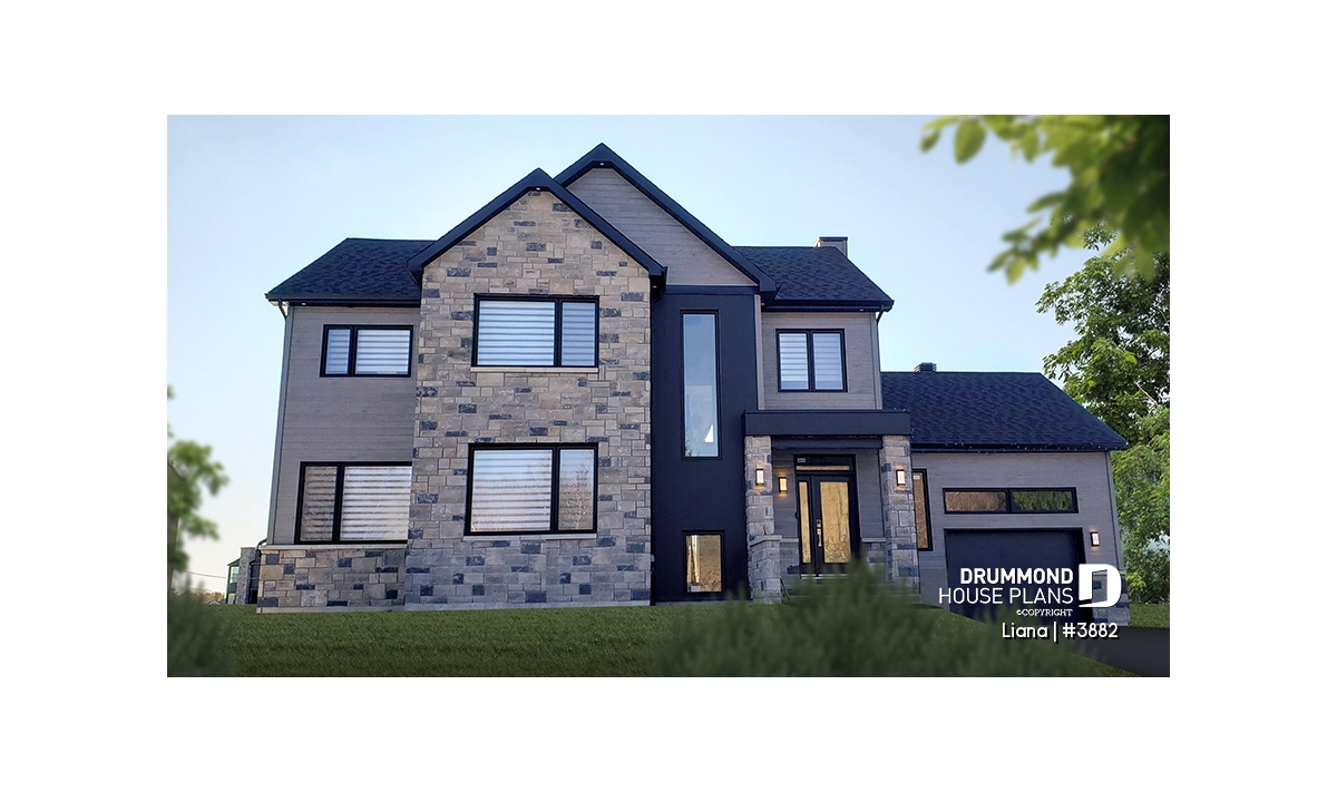 Here is a modern house plan with double garage designed in a truly contemporary spirit for its occupants, with its somewhat simplified architectural lines and popular exterior materials and colors and interior floor plans that have an open living concept, as well as being functional and trendy! So without further delay, let’s step in!
