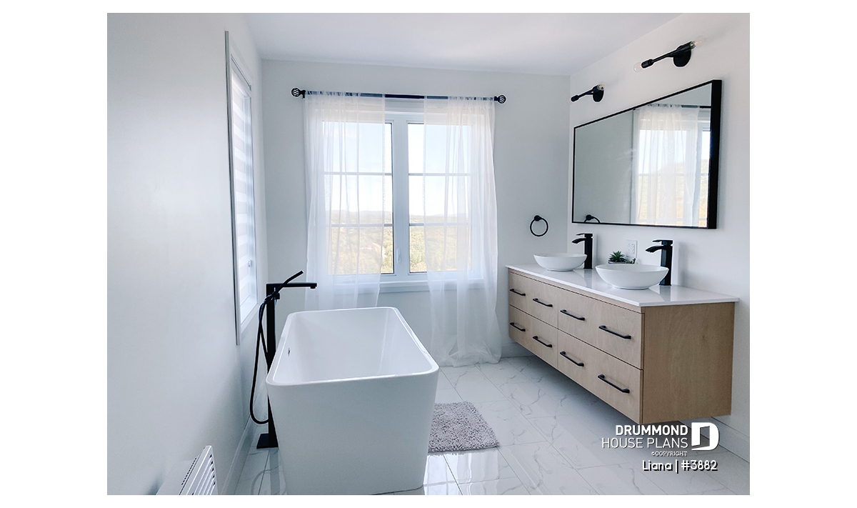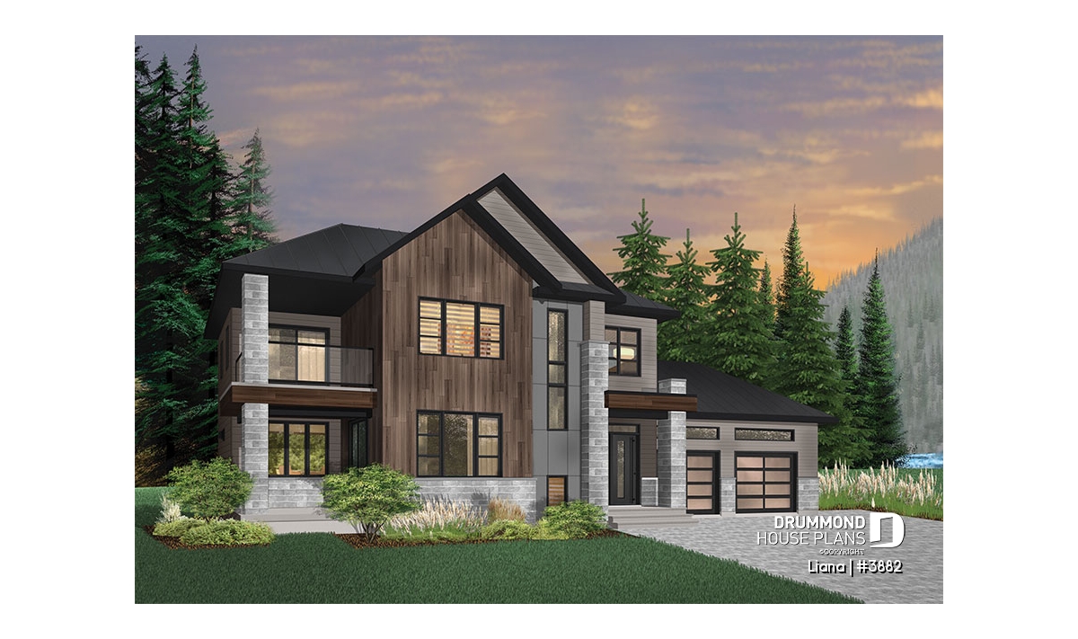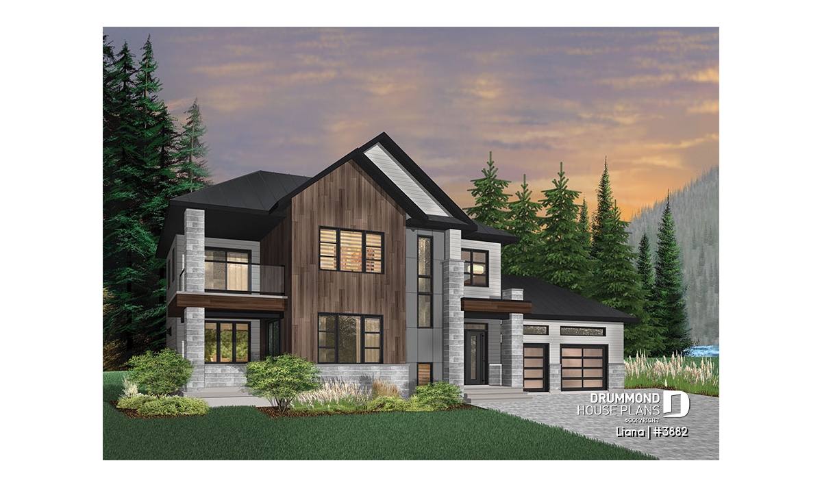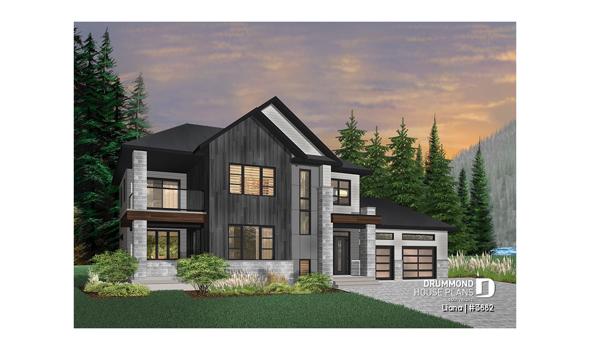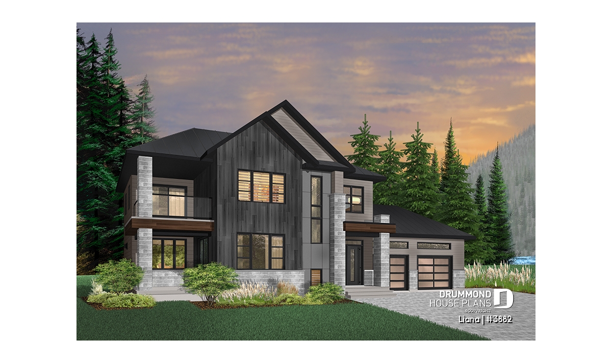 Here is a modern house plan with double garage designed in a truly contemporary spirit for its occupants, with its somewhat simplified architectural lines and popular exterior materials and colors and interior floor plans that have an open living concept, as well as being functional and trendy! So without further delay, let’s step in!