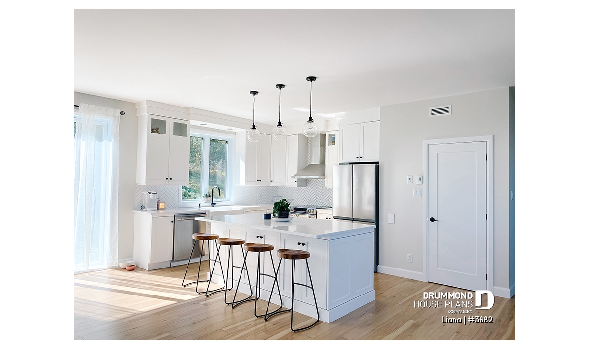 Kitchen with large island, pantry and direct access to a large rear covered balcony.