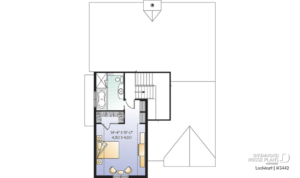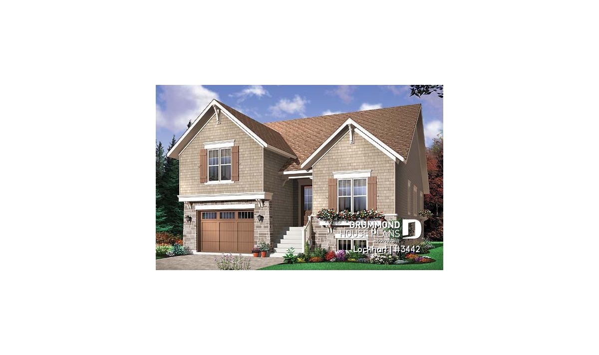 Well-centered fireplace at rear and triple patio doors on each side. Kitchen with well-dimensioned lunch counter work island. Nice master suite above garage with a sloped ceiling and integrated storage as well as a large walk-in closet.