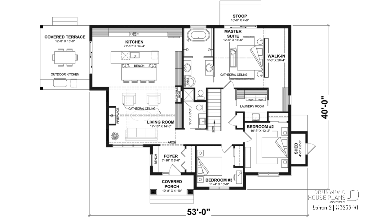 Several decorative arches are inserted into the interior architecture (front entrance, master bedroom entrance and living room).