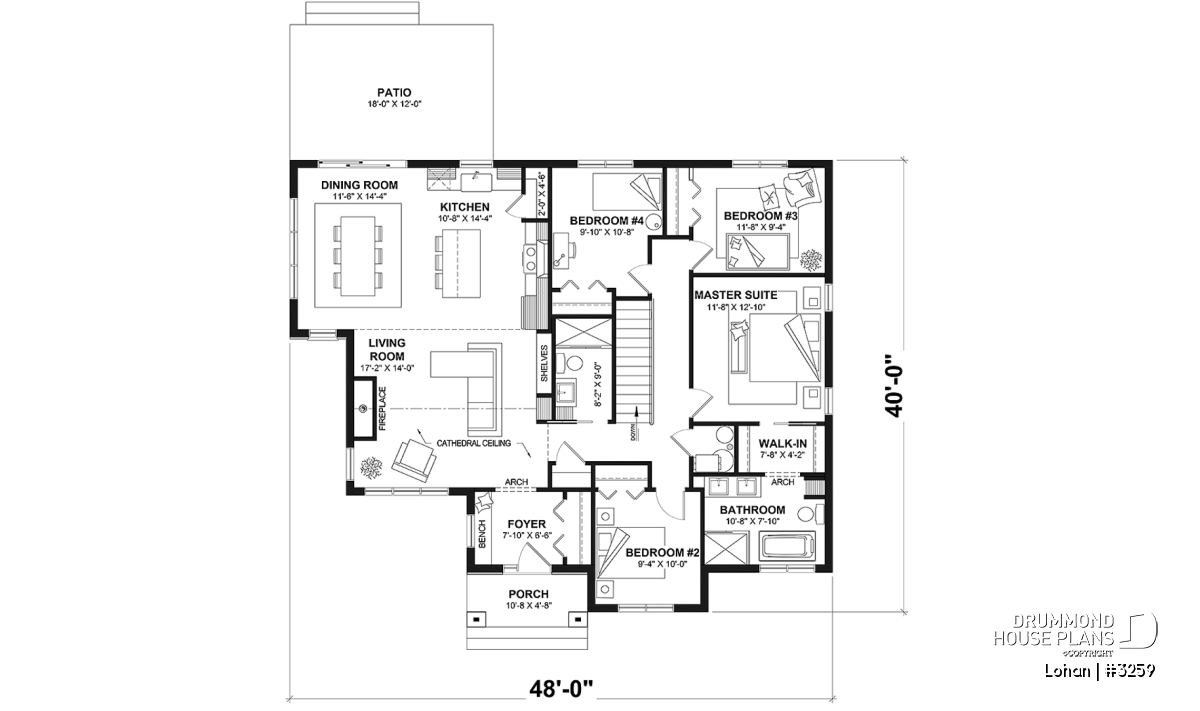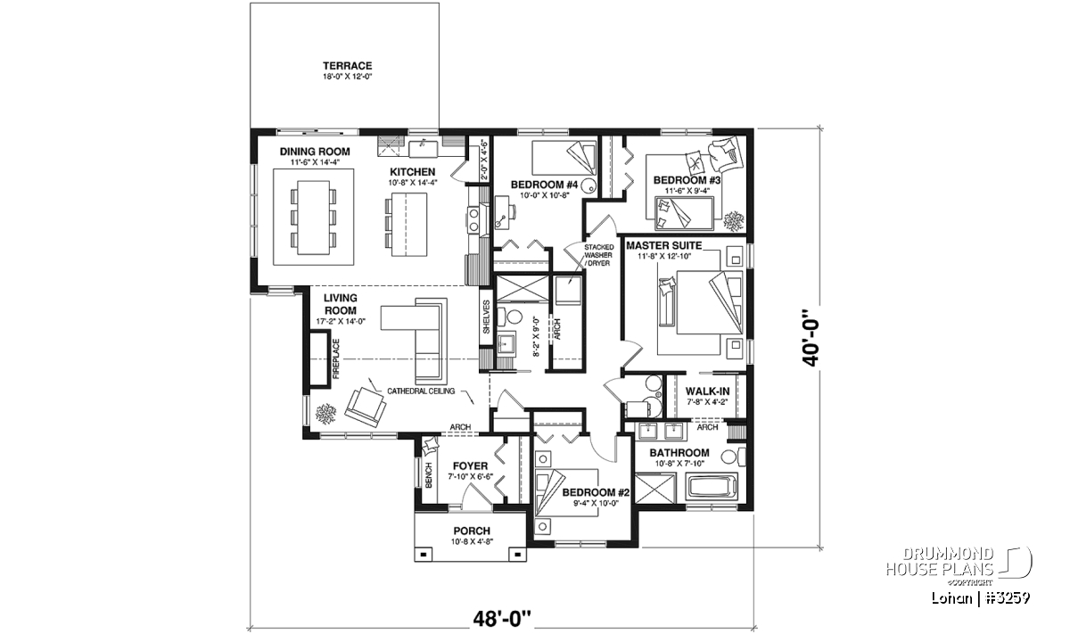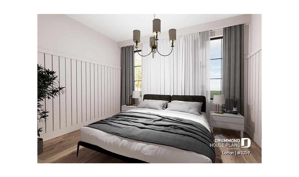 The house is planned on a slab but can also be converted by our architectural technologists, into a basement or crawl space.