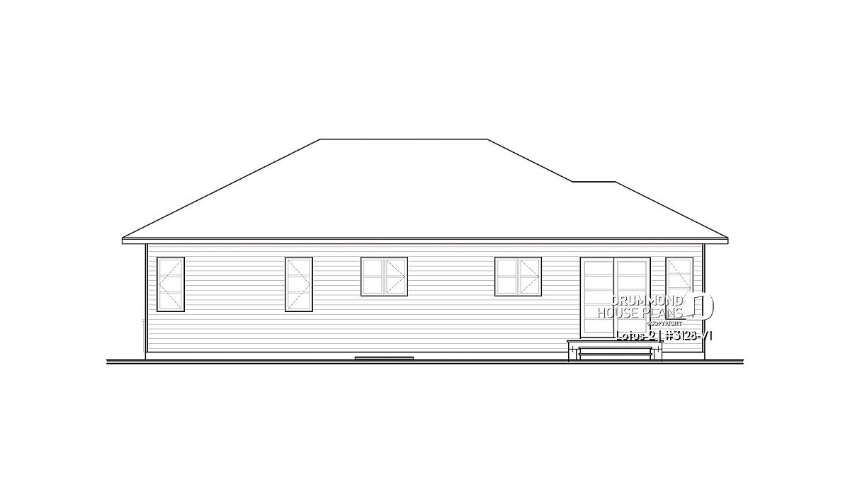 3 bedroom Contemporary house plan, open living space, affordable to build, great look. Three bedrooms on the ground level. Well-windowed activities area. Kitchen with central eating island. Bathroom with 3 ft x 5 ft shower and laundry closet. Master bedroom with two large closets.