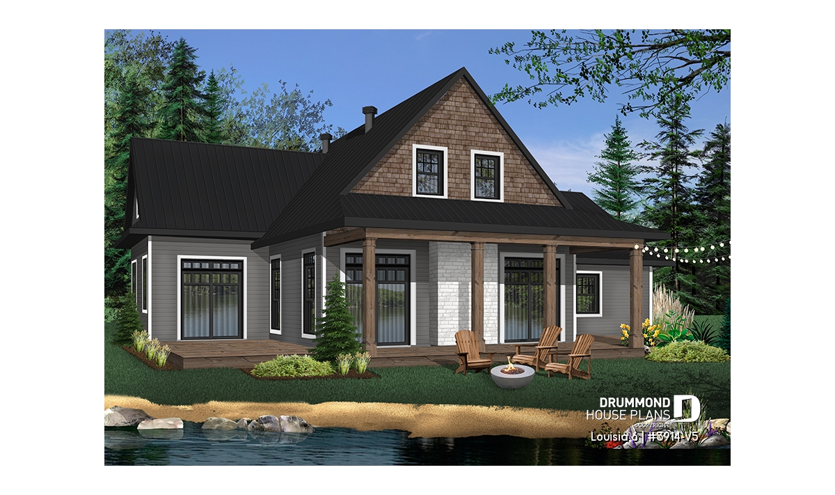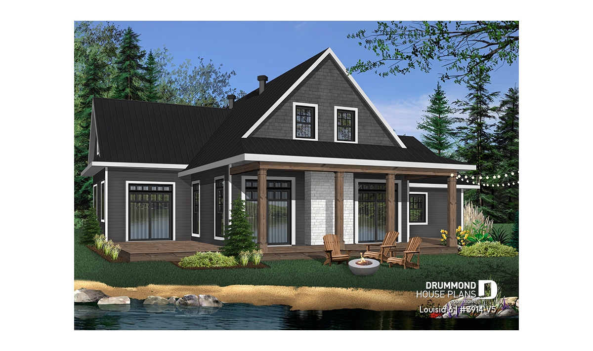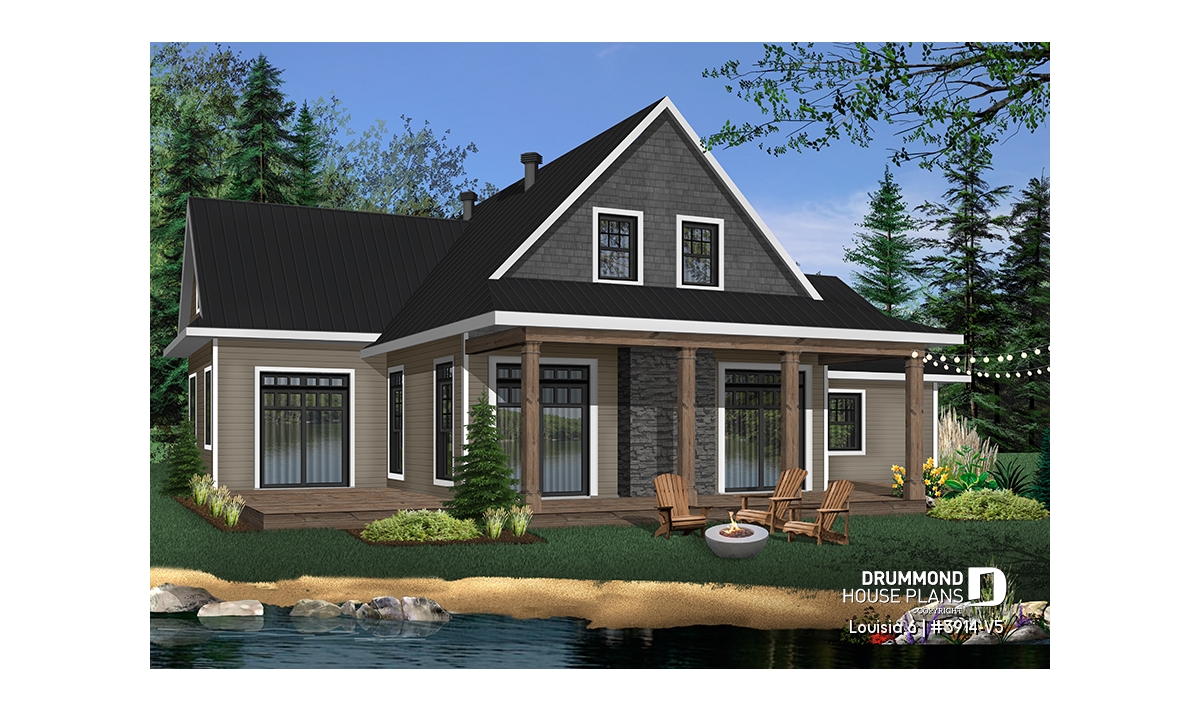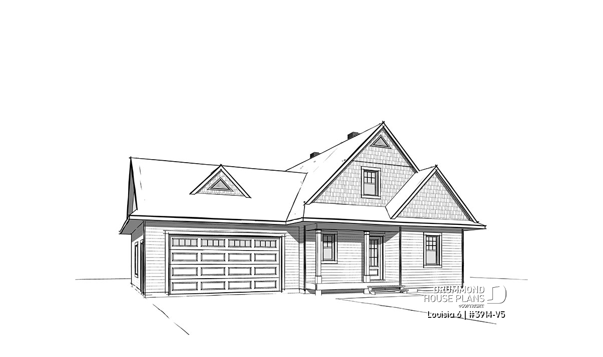 Simple but elegant lines and at the same time, a front façade just as inviting as the rear elevation, generous fenestration, a large veranda accessible from the master suite and a very large terrace, partially covered, are the exterior features of this new Drummond House Plans’ house plan # 3914-V5.