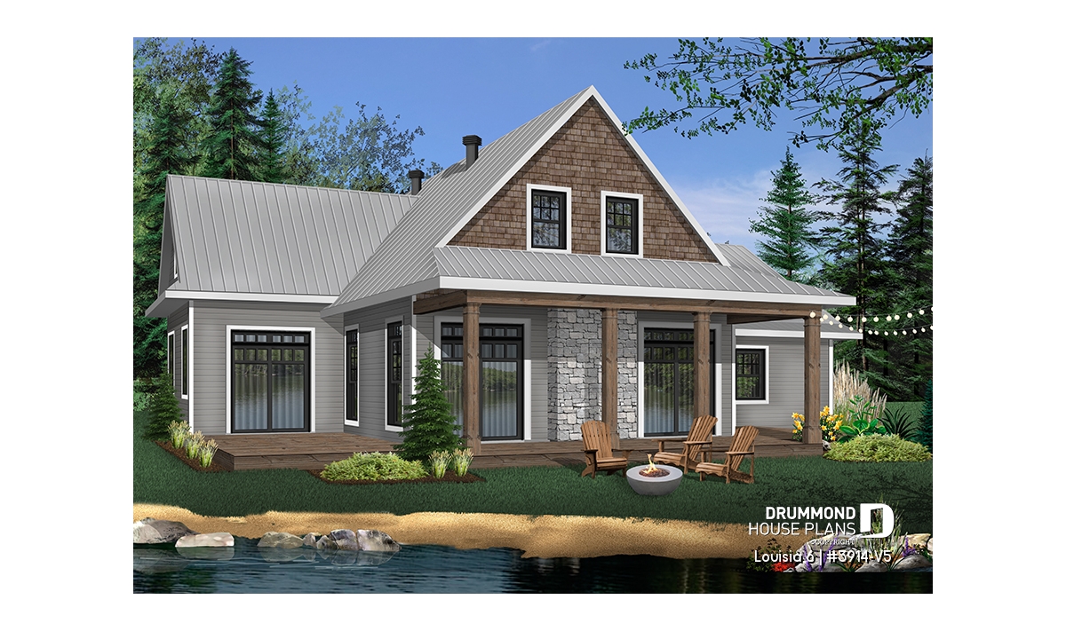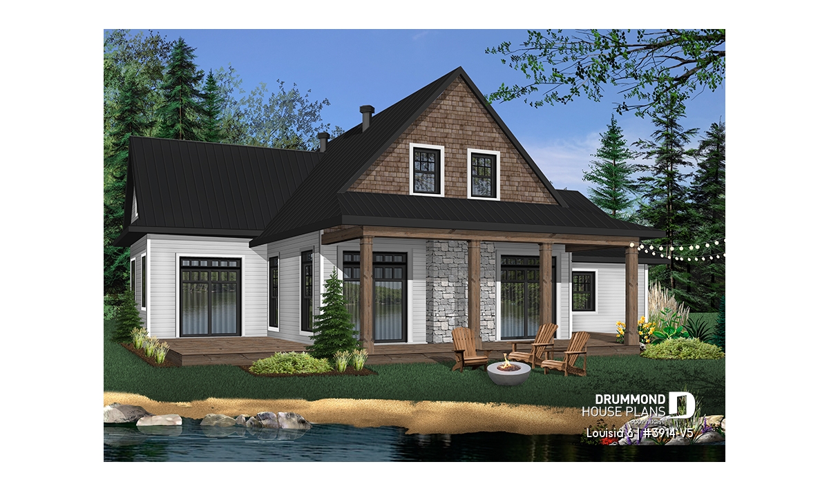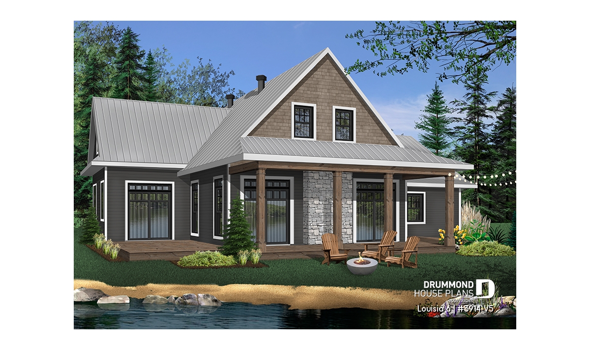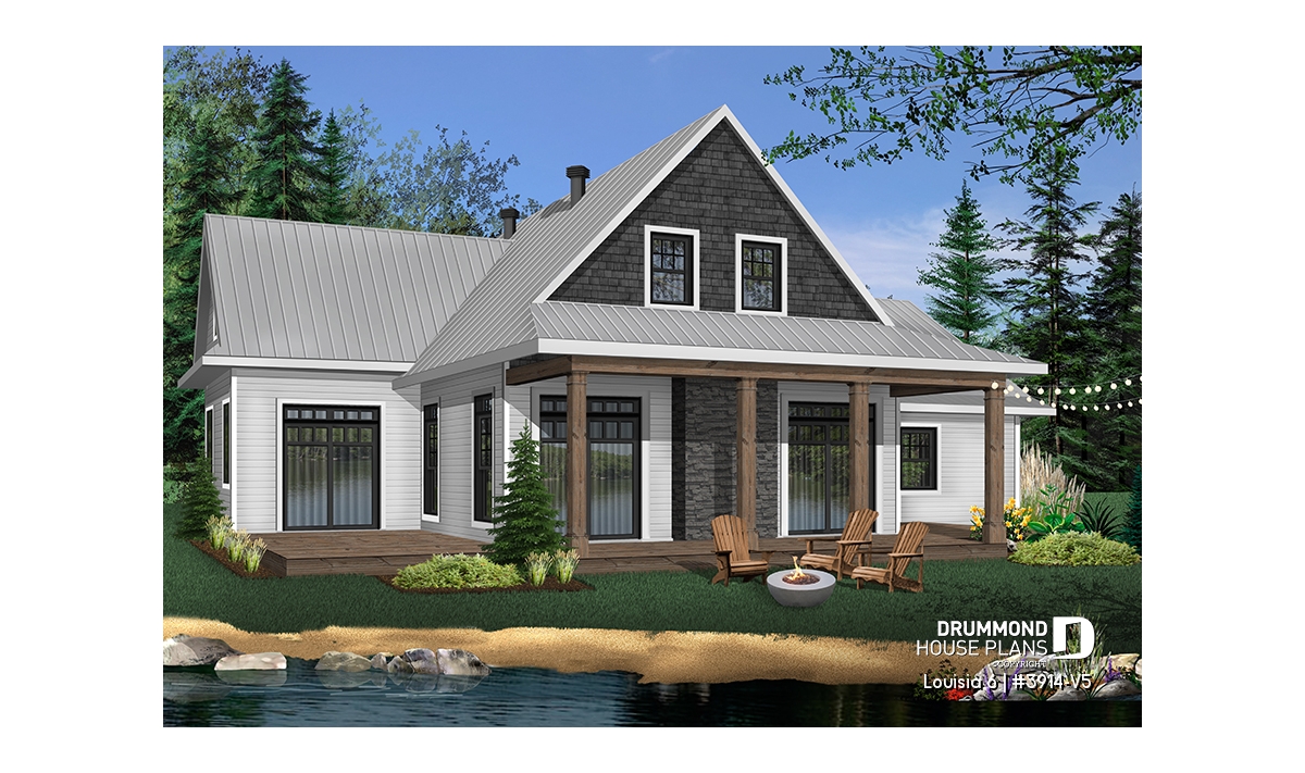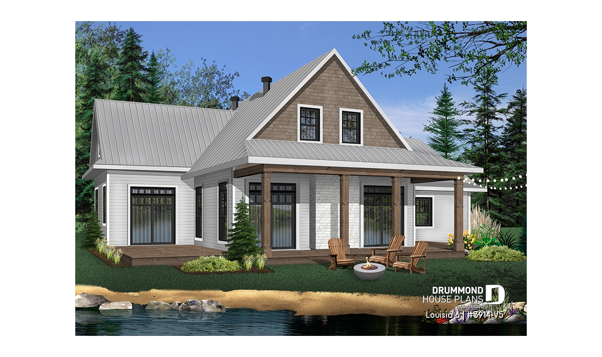 Simple but elegant lines and at the same time, a front façade just as inviting as the rear elevation, generous fenestration, a large veranda accessible from the master suite and a very large terrace, partially covered, are the exterior features of this new Drummond House Plans’ house plan # 3914-V5.