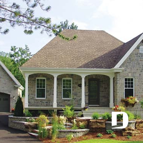 A classic look, lovely covered porch and balanced masses of this tidy bungalow are sure to please passersby. Beyond a lovely front porch, one finds a comfortable and efficient interior. Cozy up by the family room fire place, dine in a light-bathed dining room which extends into the back or retreat for a soak in the corner soaker tub. The combination of a brick - stone façade and an acrylic finish, gives the home a chic presence with minimal maintenance .