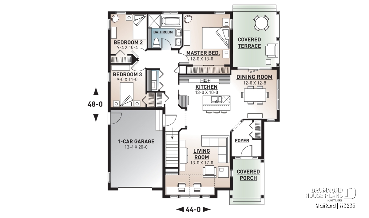 This model includes an attached single-car garage but this could easily be enlarged at the time of construction or in the future.